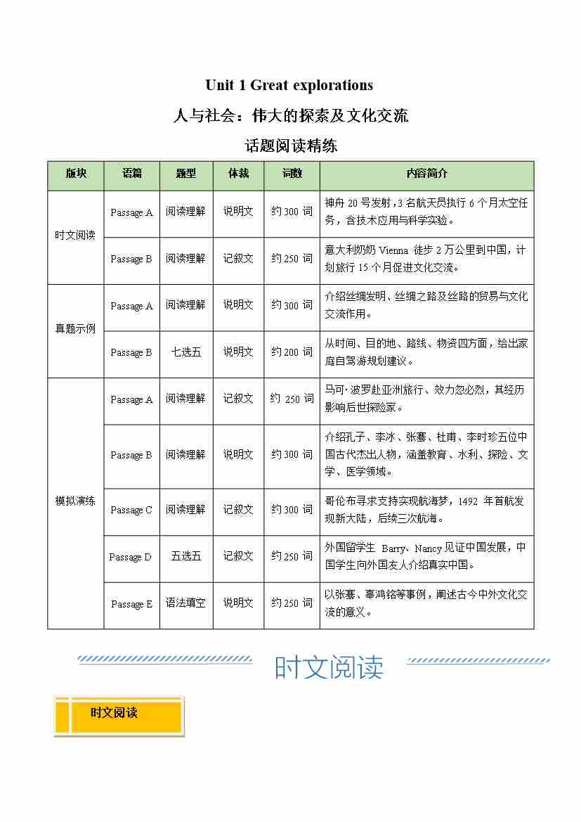 Unit 1 Great explorations 人与社会:伟大的探索及文化交流(话题阅读精练)(原卷版)