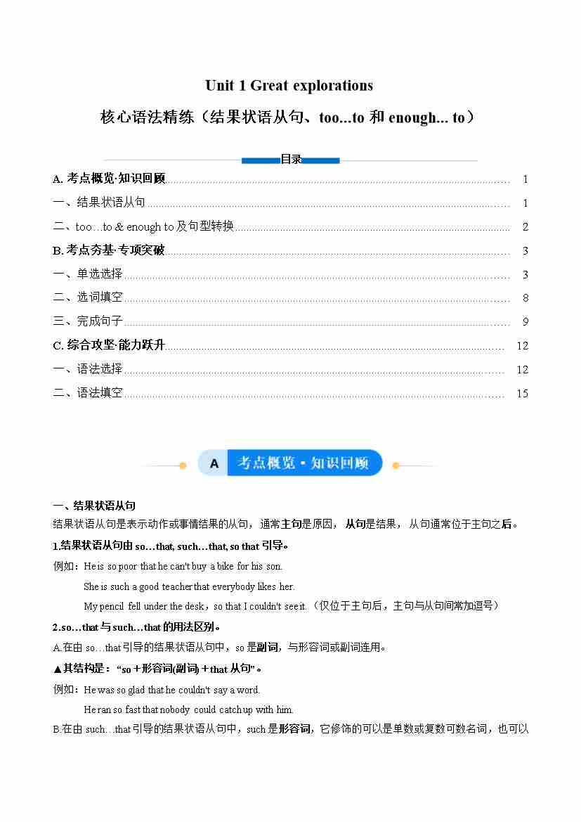 Unit 1 Great explorations(单元核心语法精练)(原卷版)