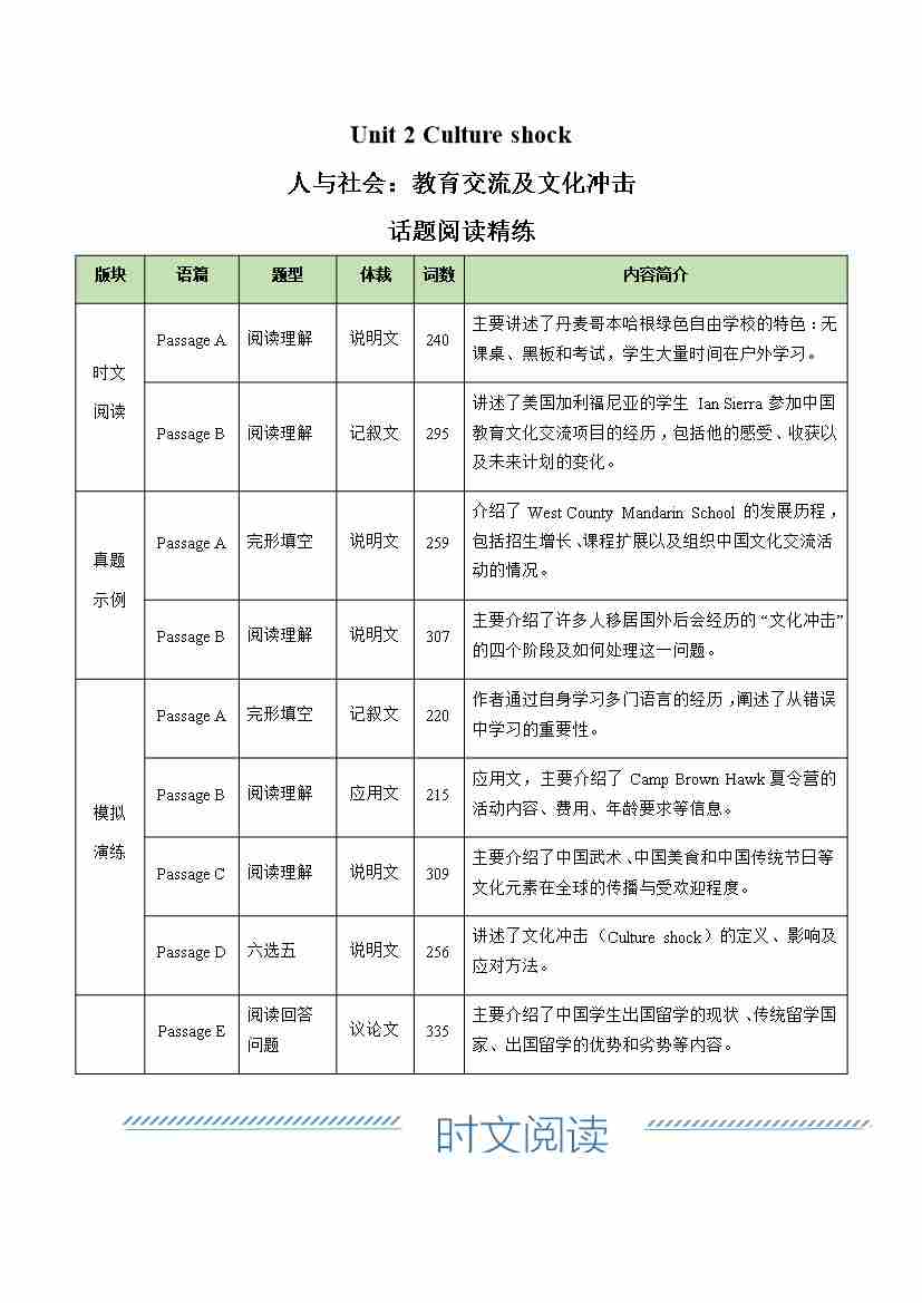 Unit 2 Culture shock 人与社会:教育交流及文化差异(话题阅读精练)(解析版)