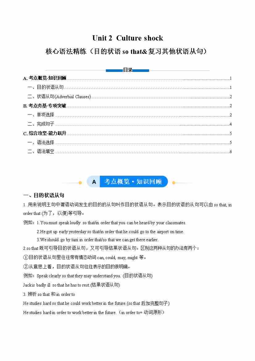Unit 2 Culture shock(单元核心语法精练)(解析版)