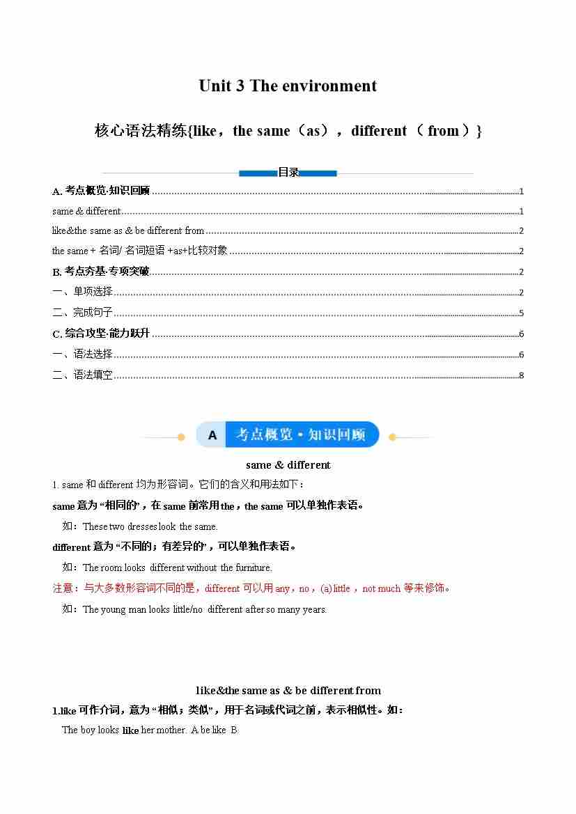 Unit 3 The environment(单元核心语法精练)(解析版)