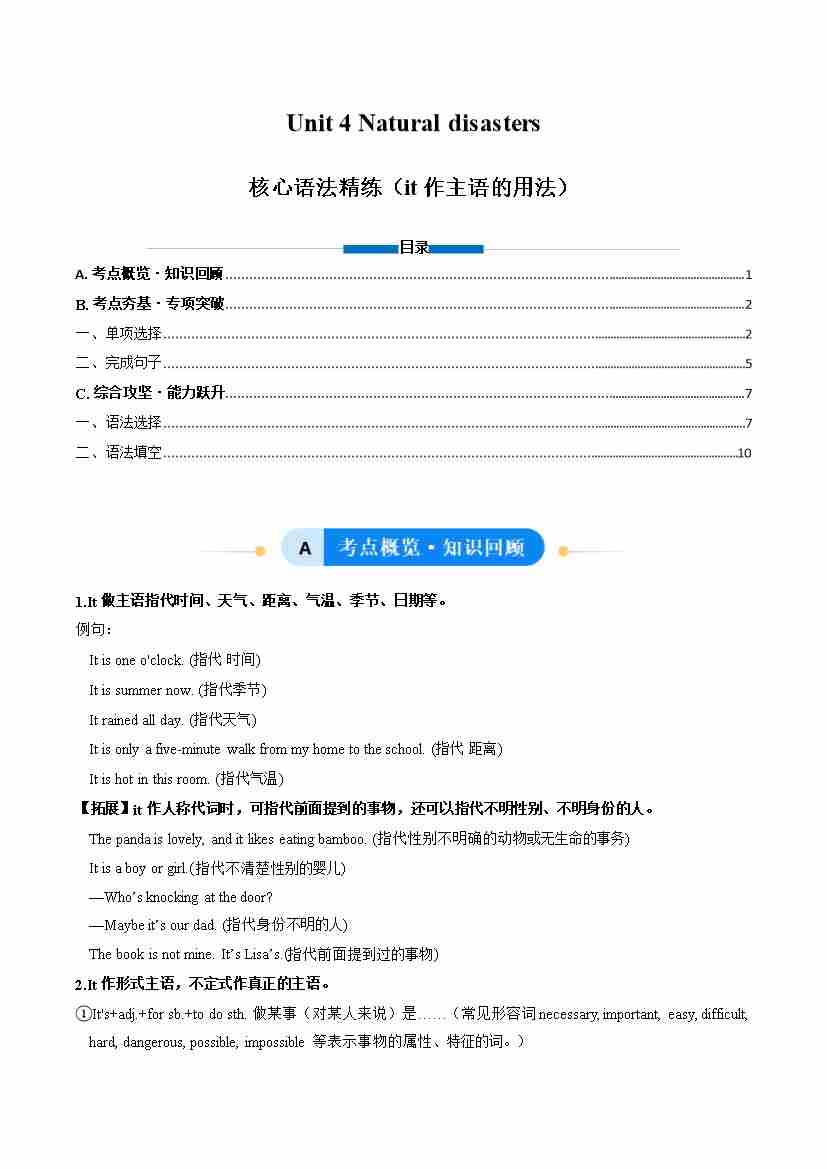 Unit 4 Natural disasters(单元核心语法精练)(原卷版)
