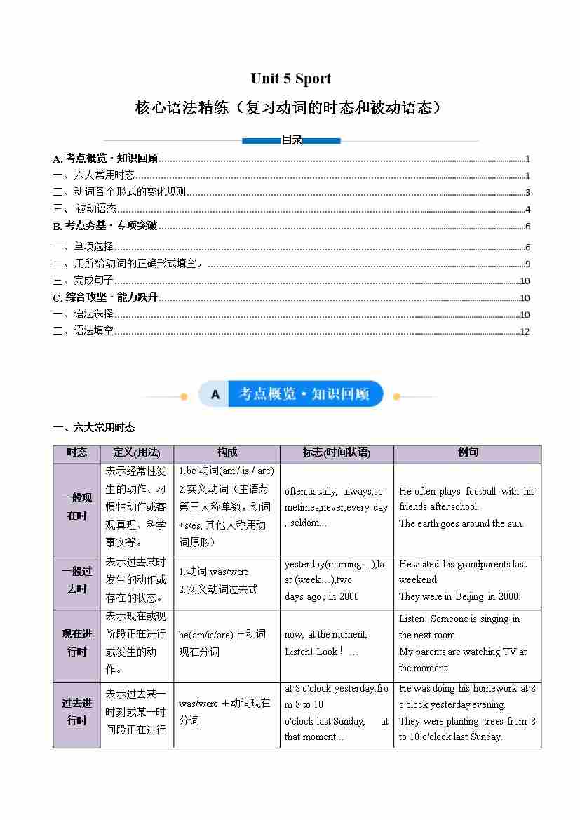 Unit 5 Sport(单元核心语法精练)(解析版)