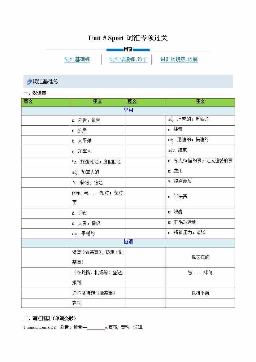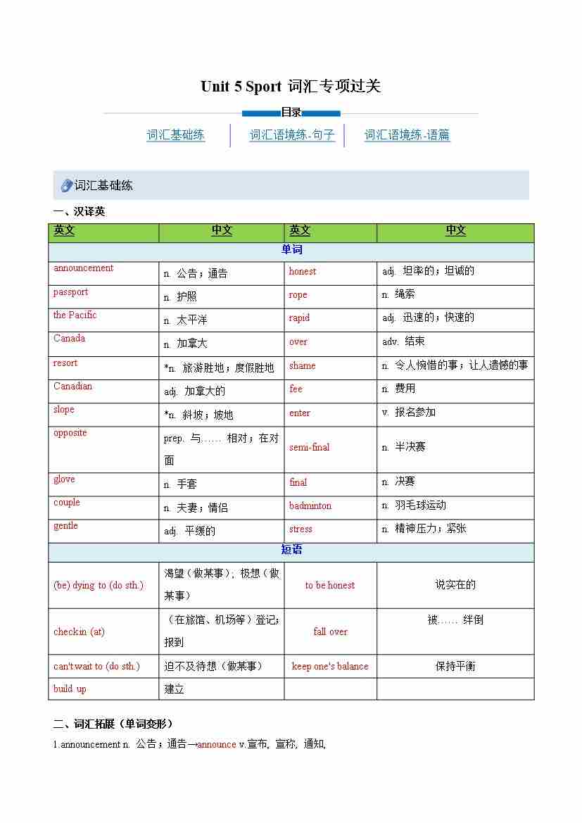 Unit 5 Sport(重难词汇精炼)(解析版)