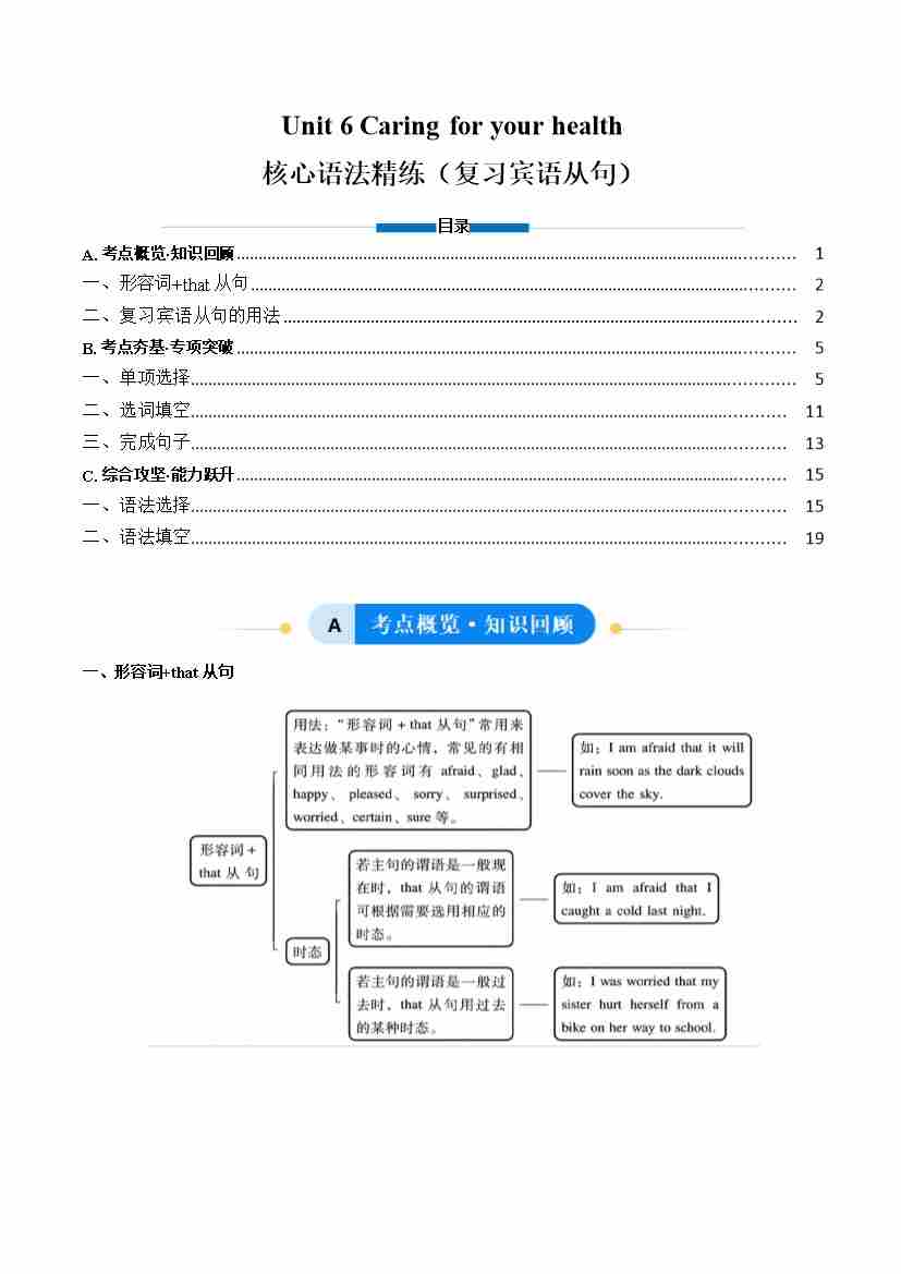 Unit 6 Caring for your health(单元核心语法精练)(原卷版)