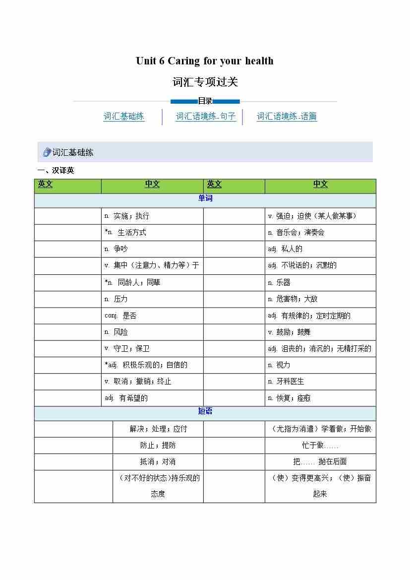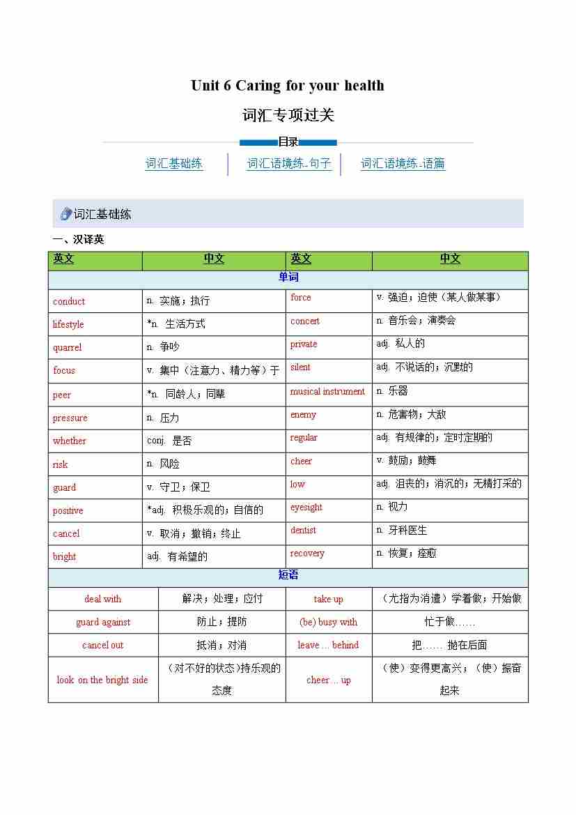 Unit 6 Caring for your health(重难词汇精炼)(解析版)