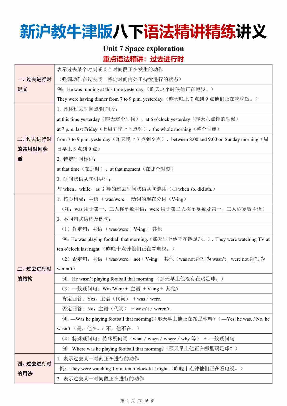 Unit 7 Space exploration 语法Grammar 过去进行时(原卷版)