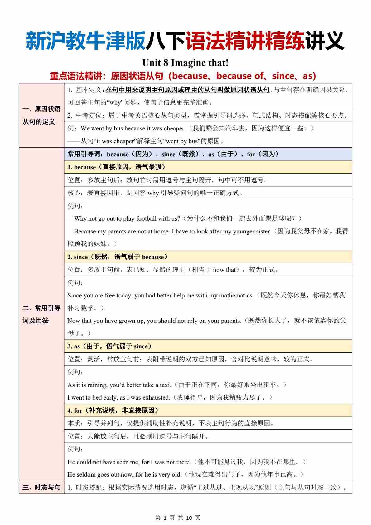 Unit 8 Imagine that! 语法Grammar 原因状语从句(原卷版)