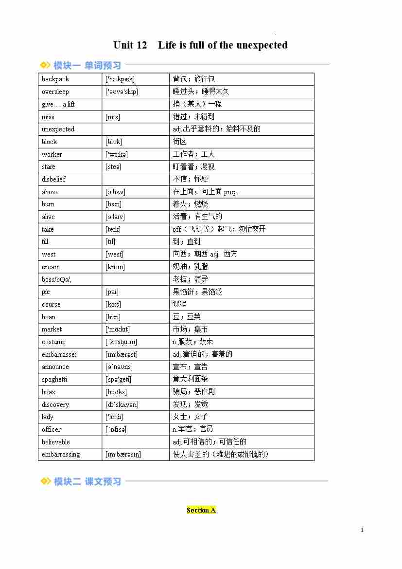 专题02 Unit 12 Life is full of the unexpected(原卷版)