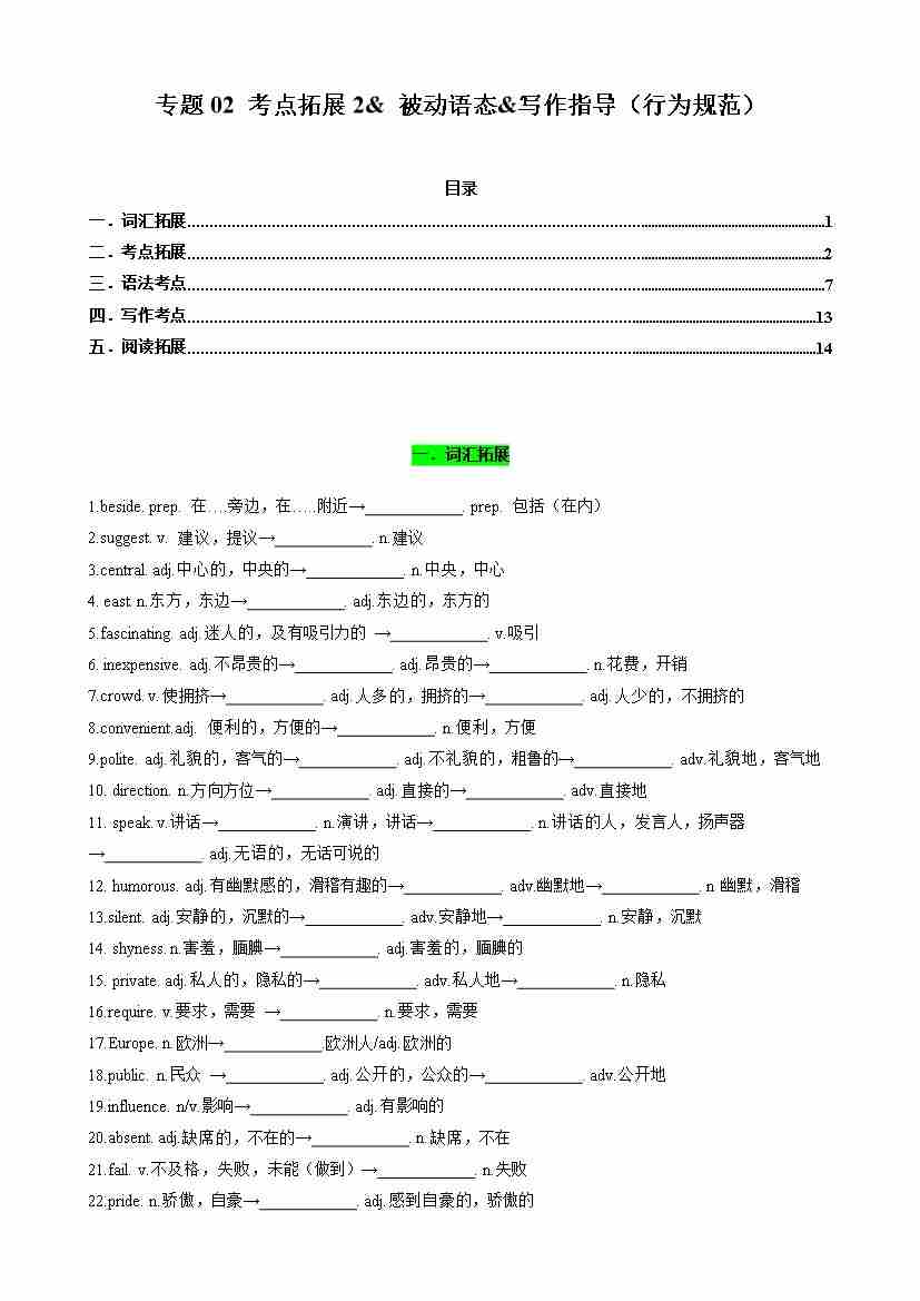 专题02 考点拓展2& 被动语态&写作指导(行为规范)(原卷版)