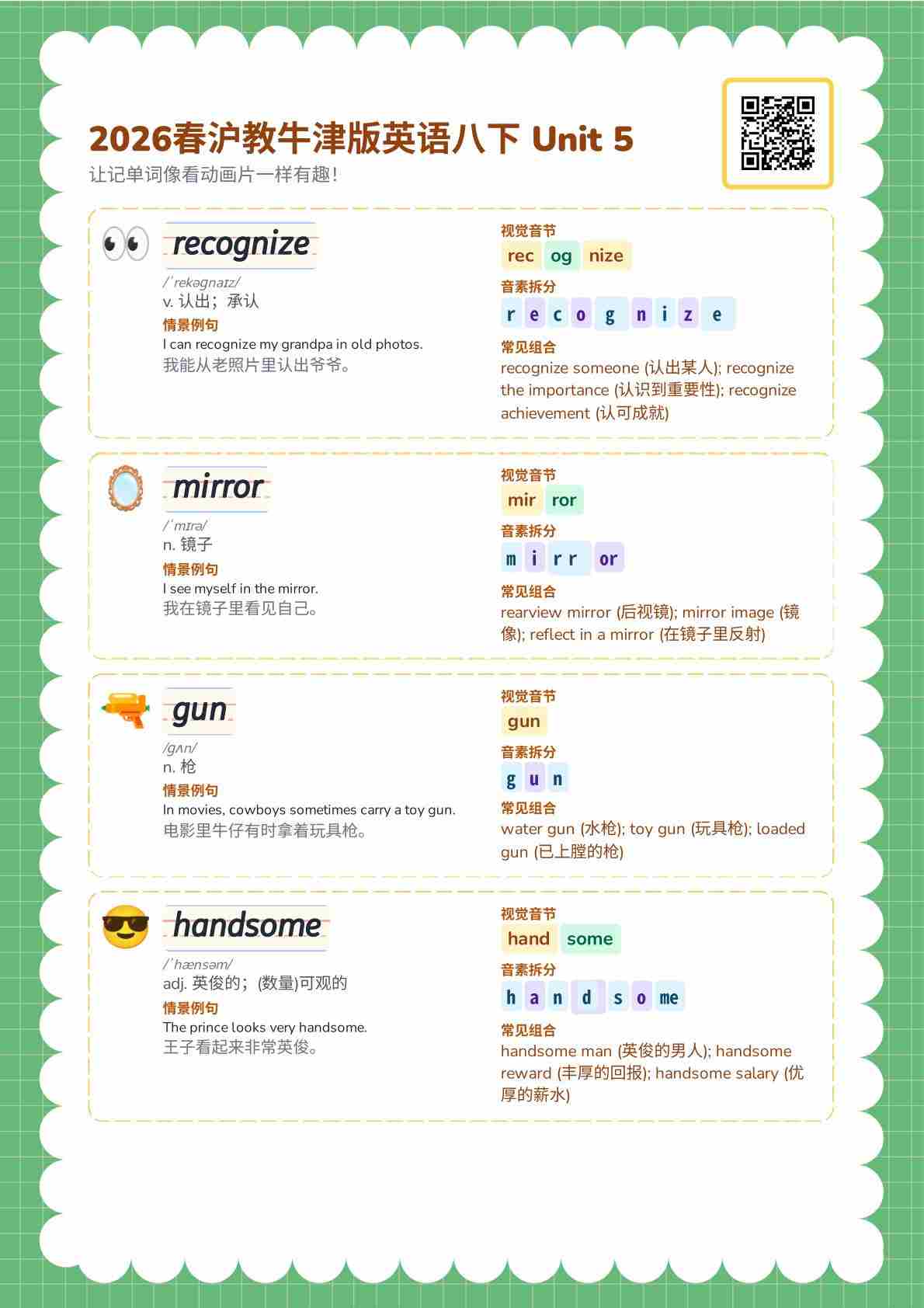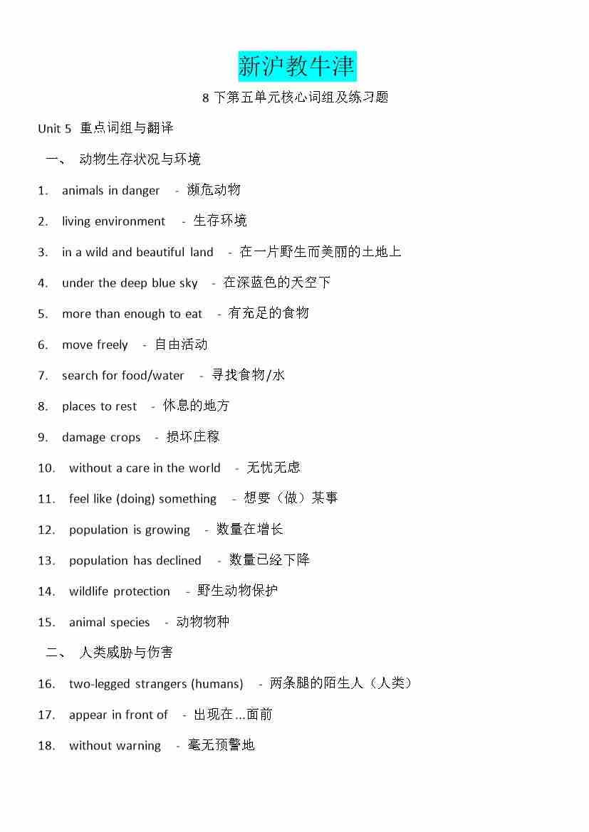 Unit 5 单元核心词组及练习 2025-2026学年沪教版英语八年级下册