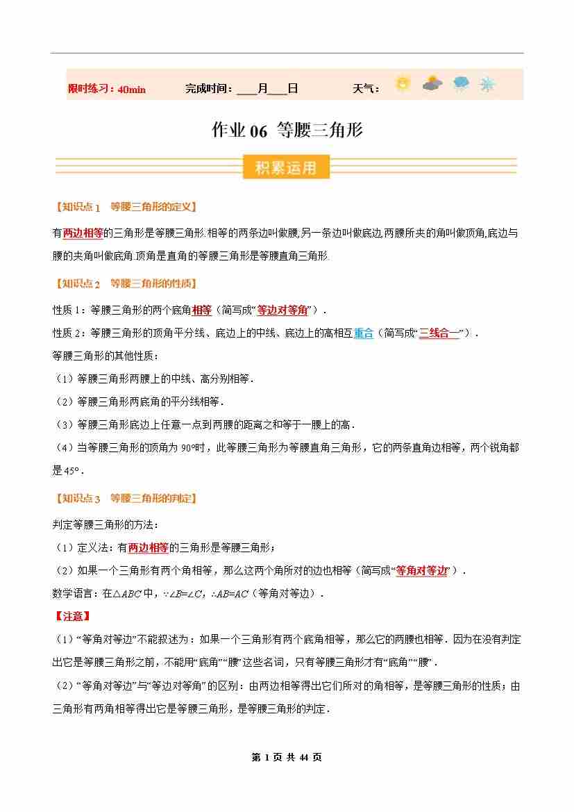 ③寒假培优练-专题06 等腰三角形(巩固培优)(教师版)-2026年八年级数学寒假衔接讲练 (人教版-新教材)