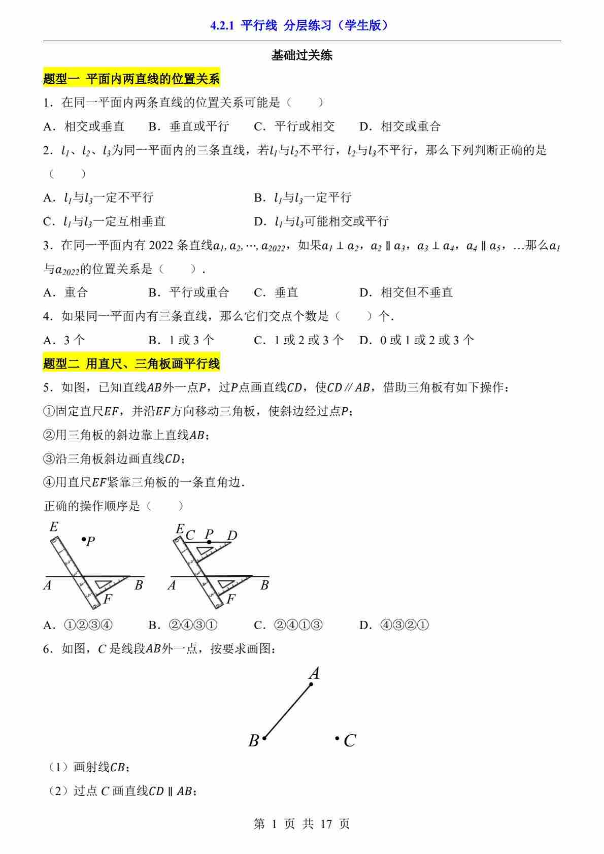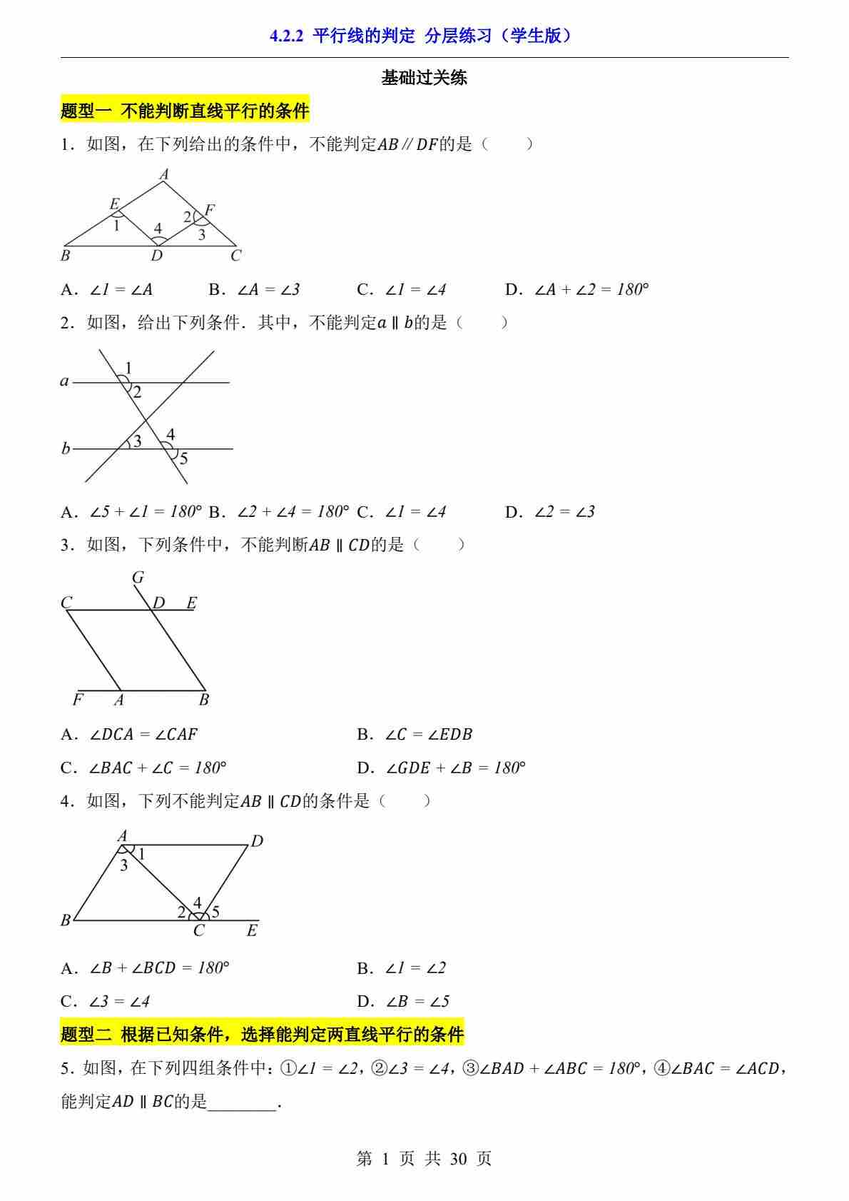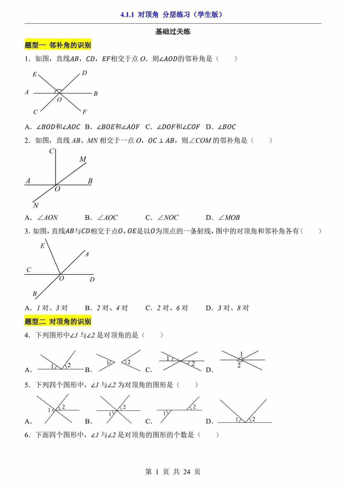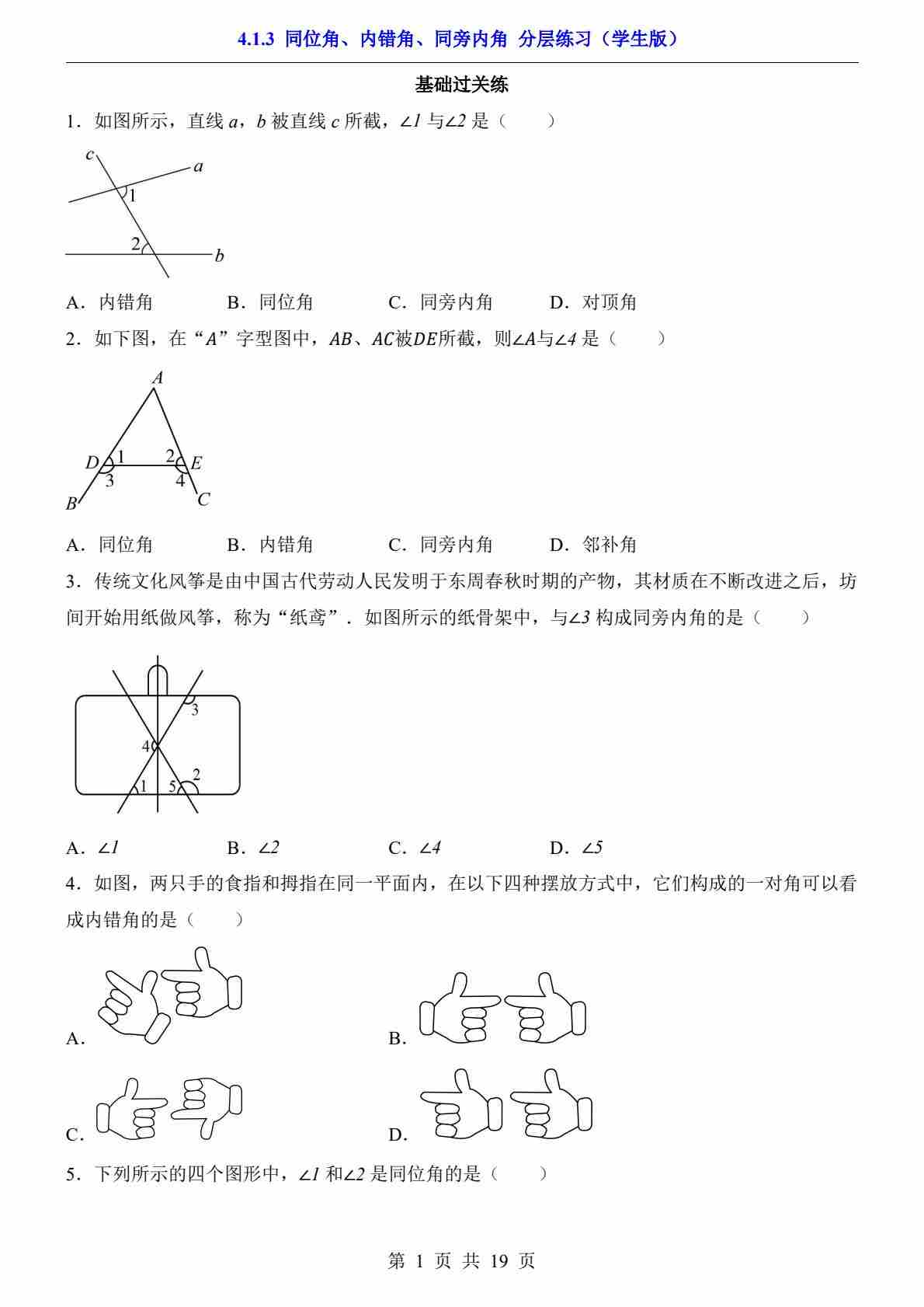 4.1.3 同位角、内错角、同旁内角(分层练习)