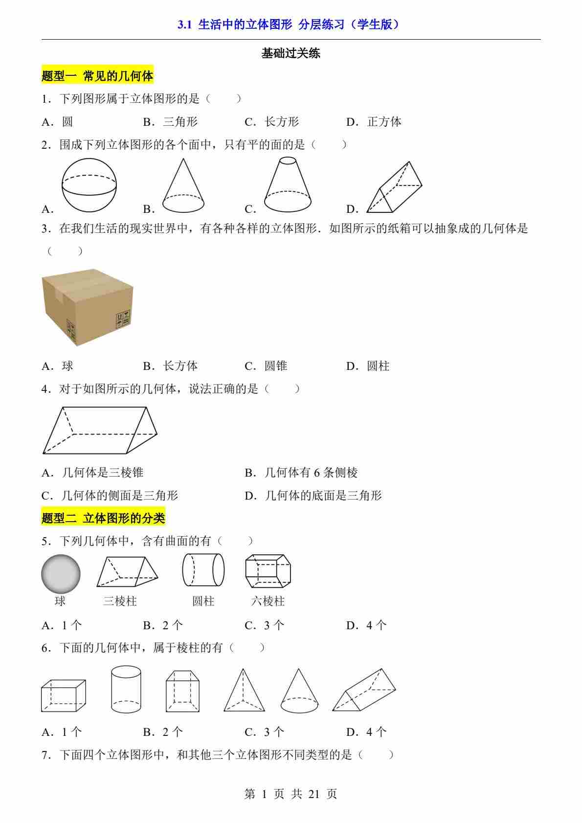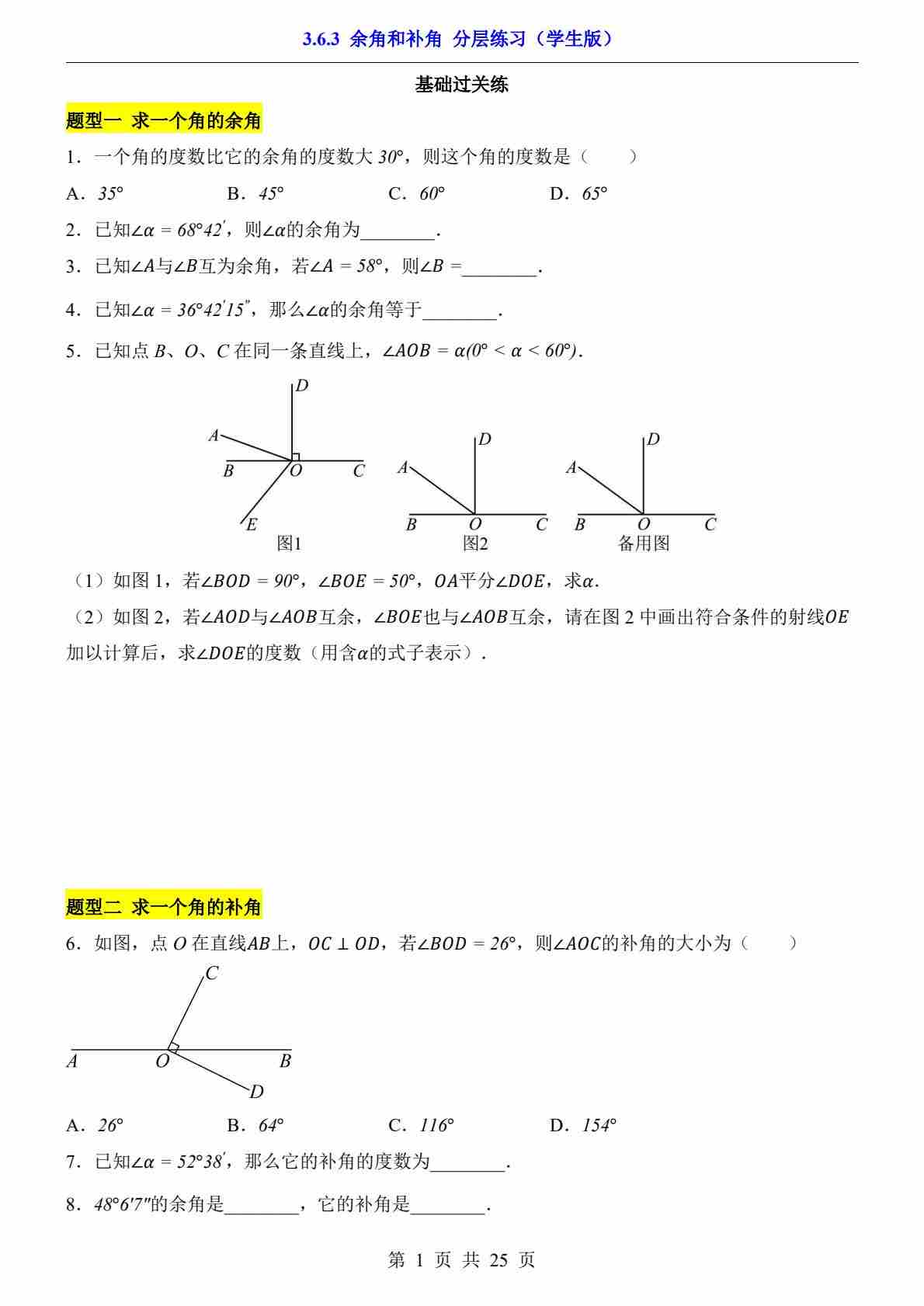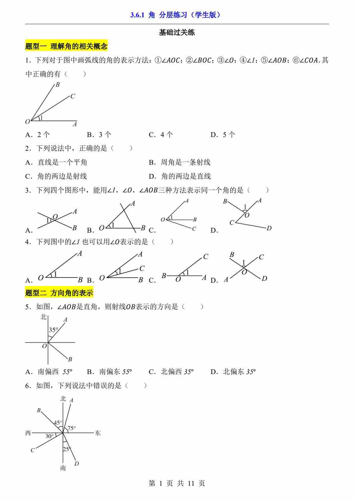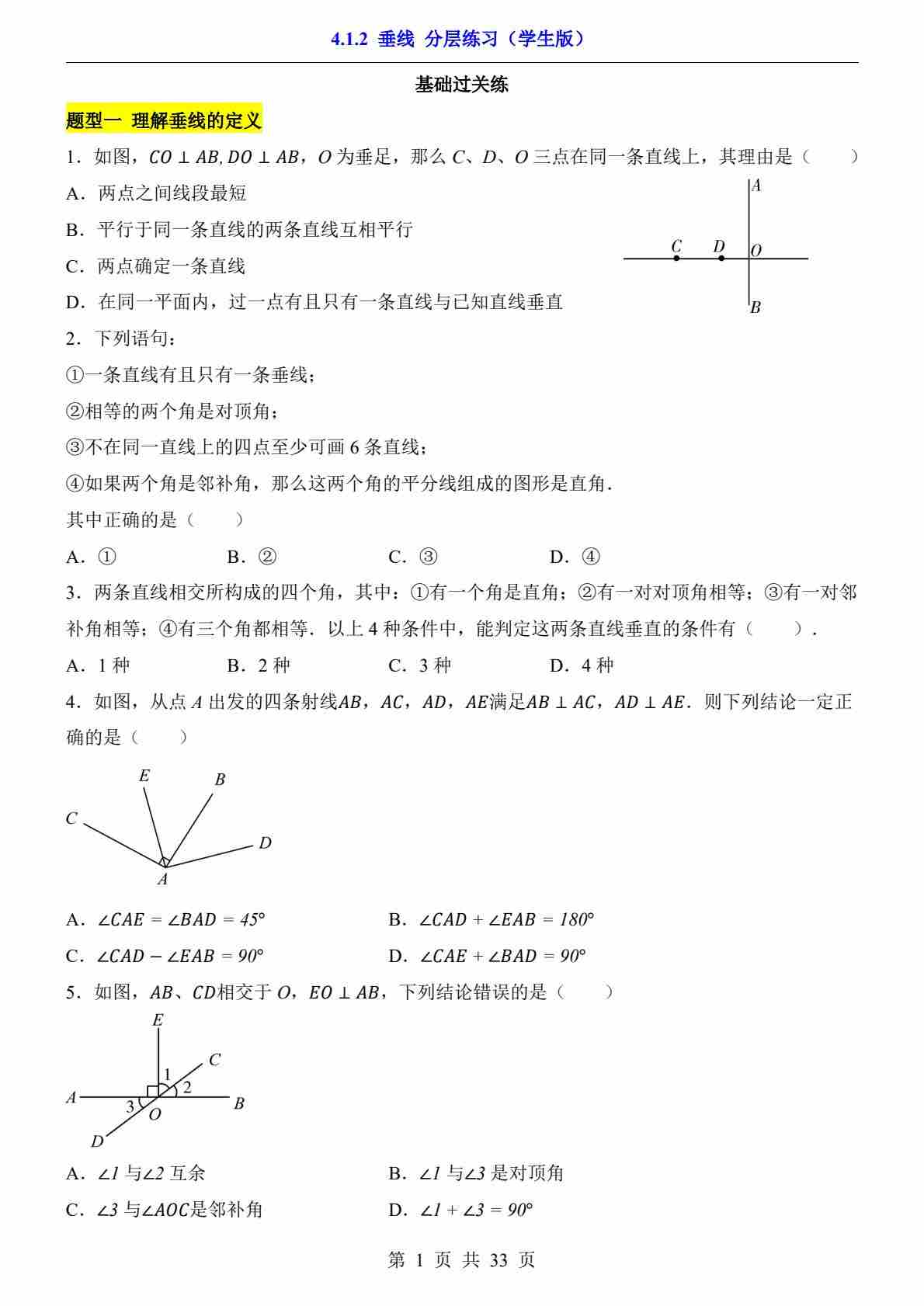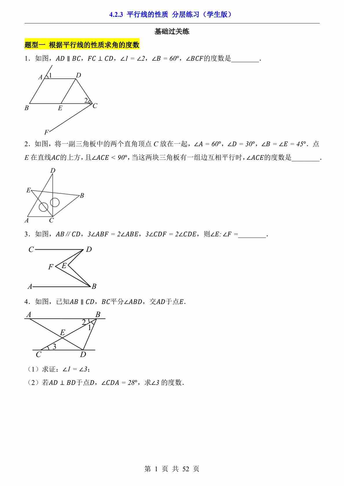 4.1.3 同位角、内错角、同旁内角(分层练习)