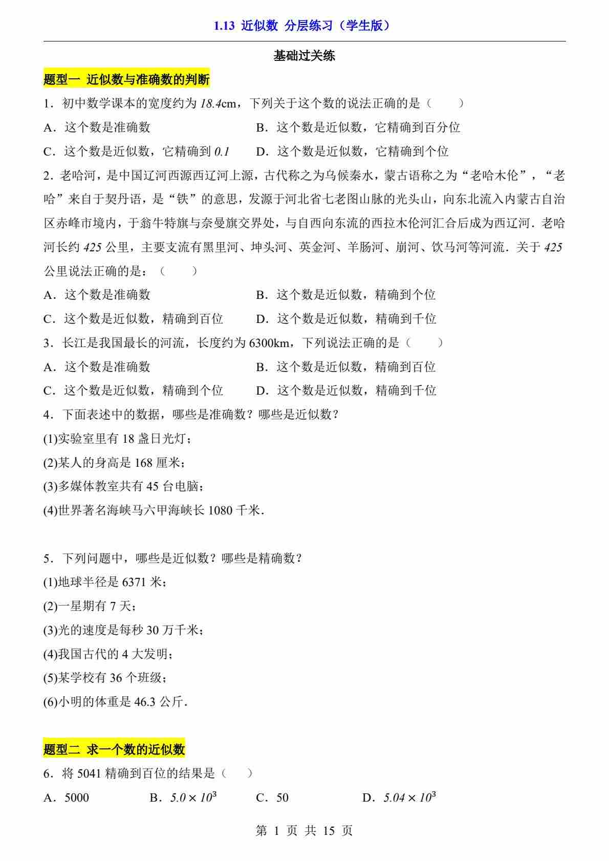 1.13 近似数(分层练习)