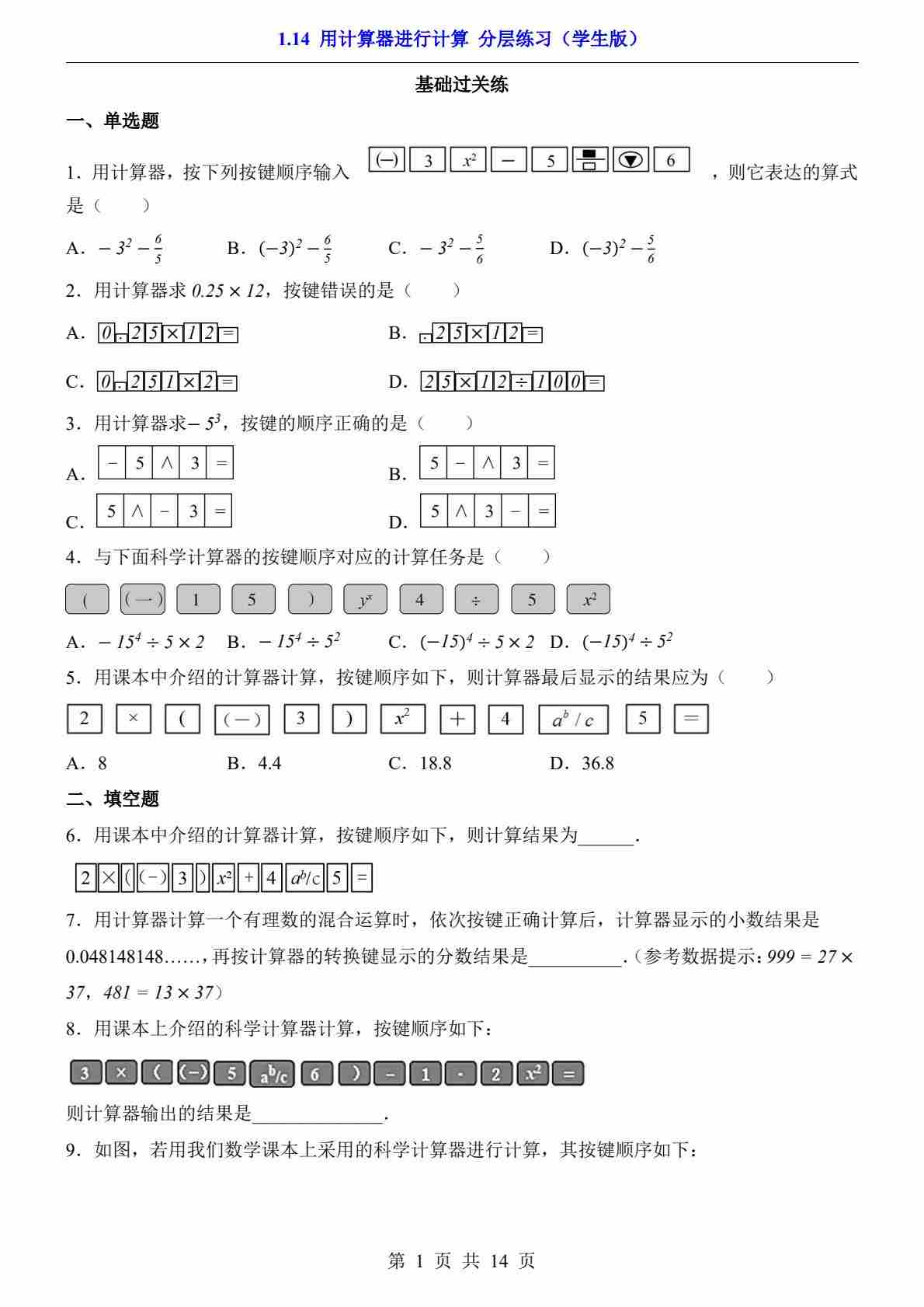 1.14 用计算器进行计算(分层练习)