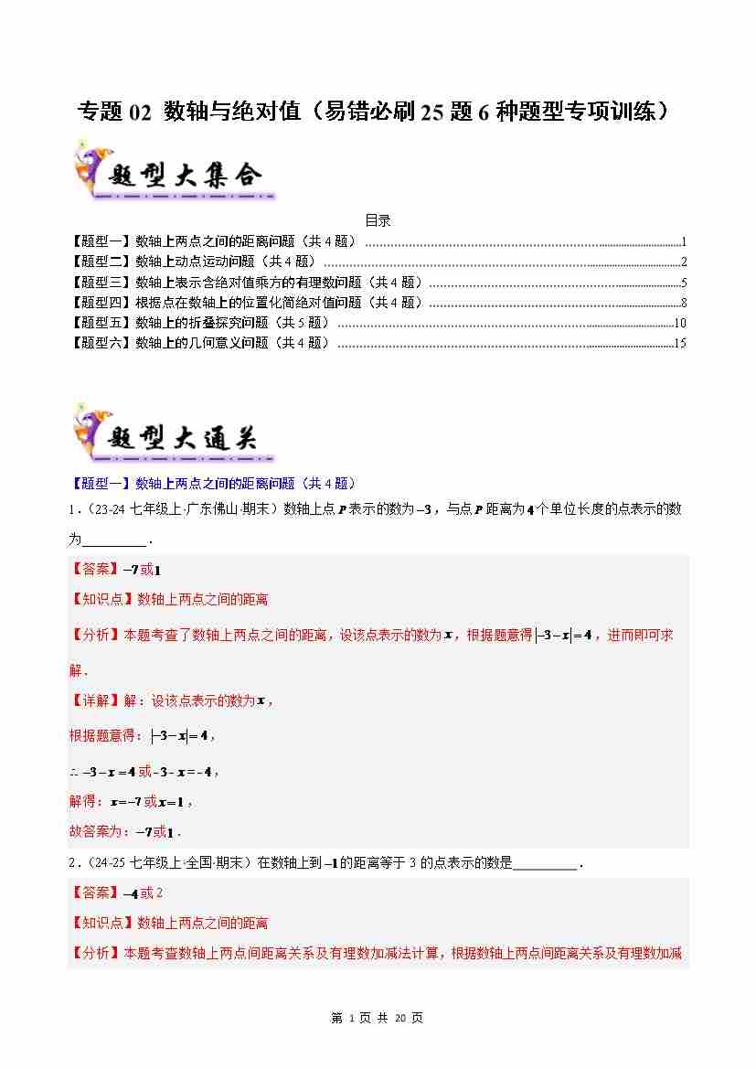 专题01 数轴与绝对值(考题猜想,易错必刷25题6种题型)(解析版)
