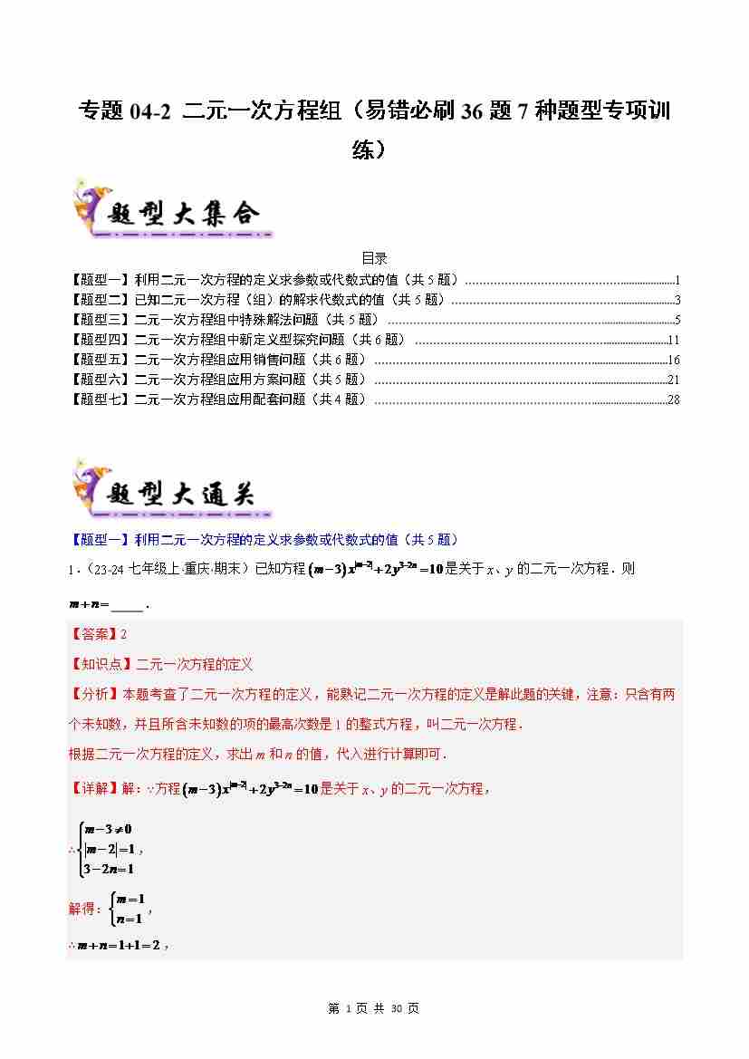 专题04-2 二元一次方程组(考题猜想,易错必刷36题7种题型)(解析版)