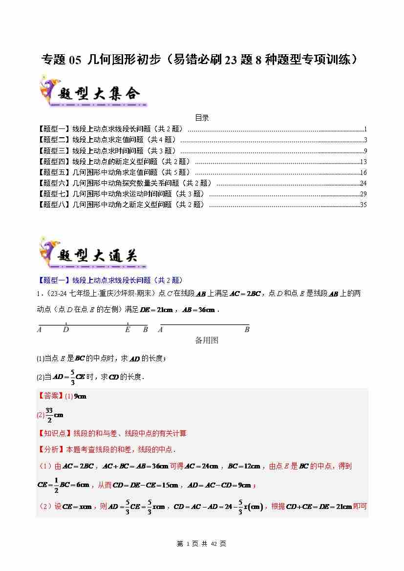 专题05 几何图形初步(考题猜想,易错必刷23题8种题型)(解析版)