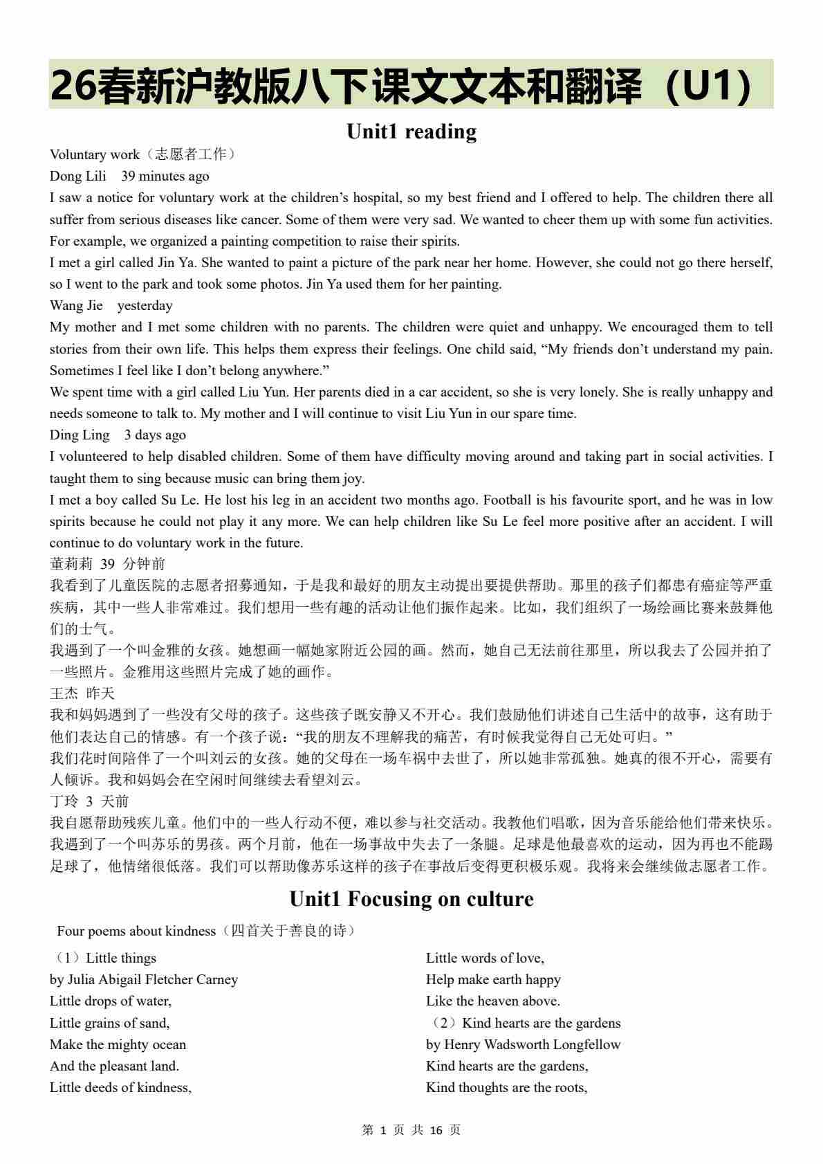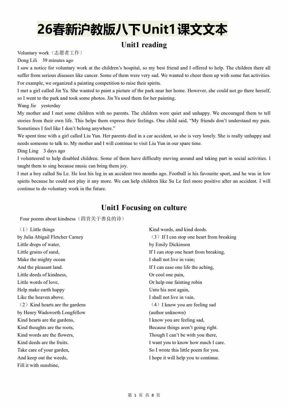 沪教牛津版新八下课文文本和翻译