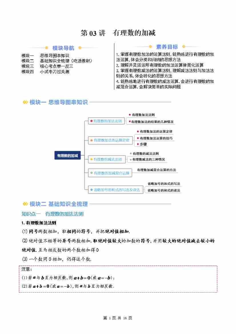 第03讲 有理数的加减(原卷版)