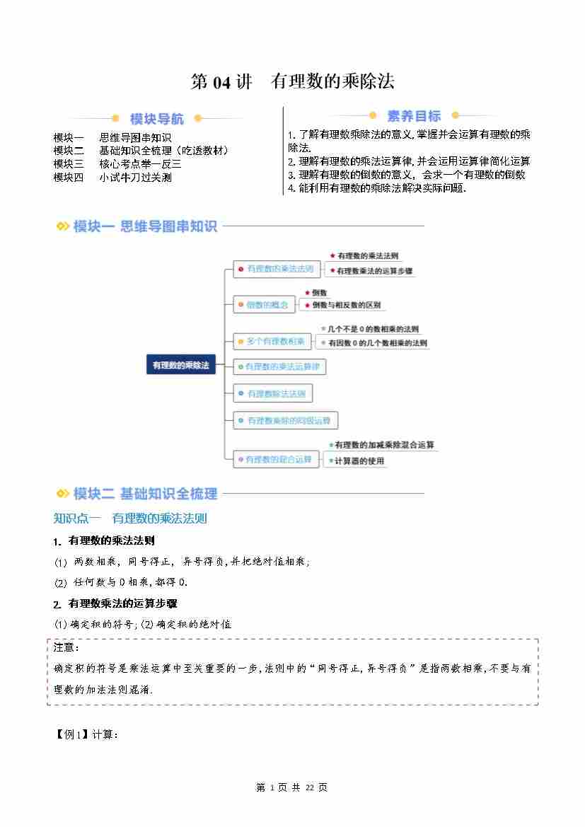 第04讲 有理数的乘除法(原卷版)