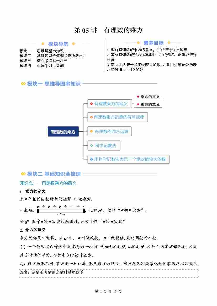 第05讲 有理数的乘方(原卷版)