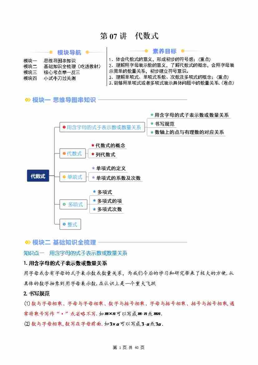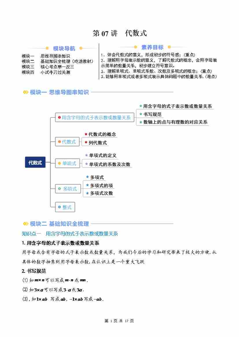 第07讲 代数式(原卷版)
