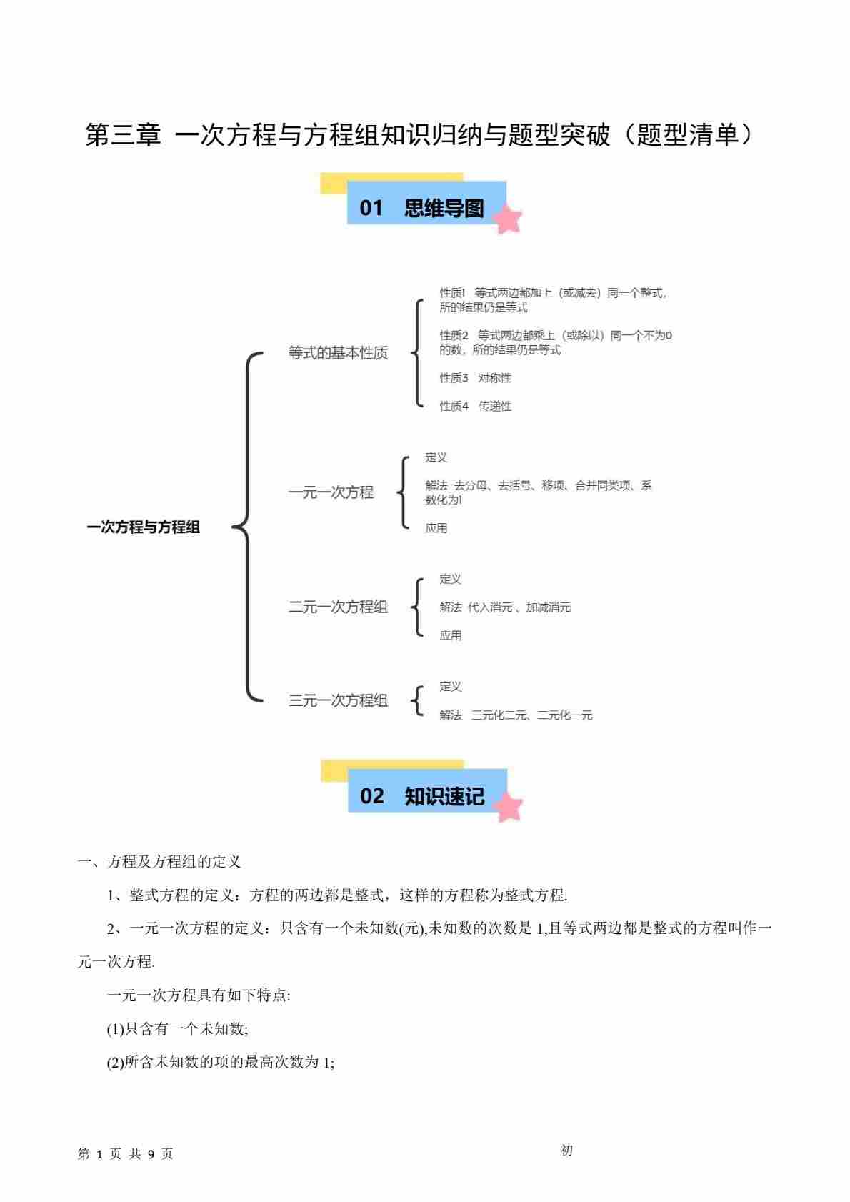第3章 一次方程与方程组知识归纳与题型突破(7类题型清单)(解析版)