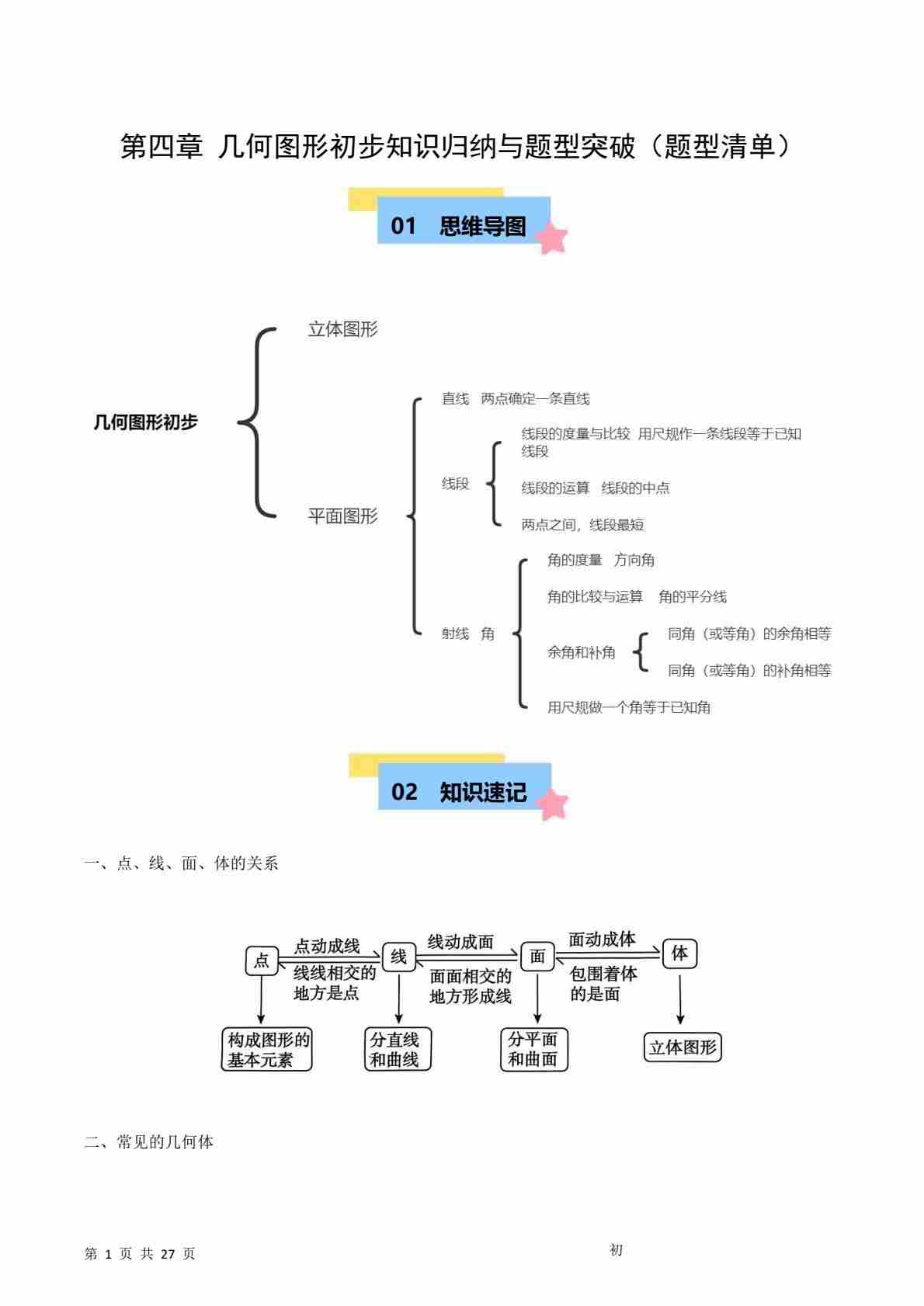 第4章 几何图形初步知识归纳与题型突破(10类题型清单)(原卷版)