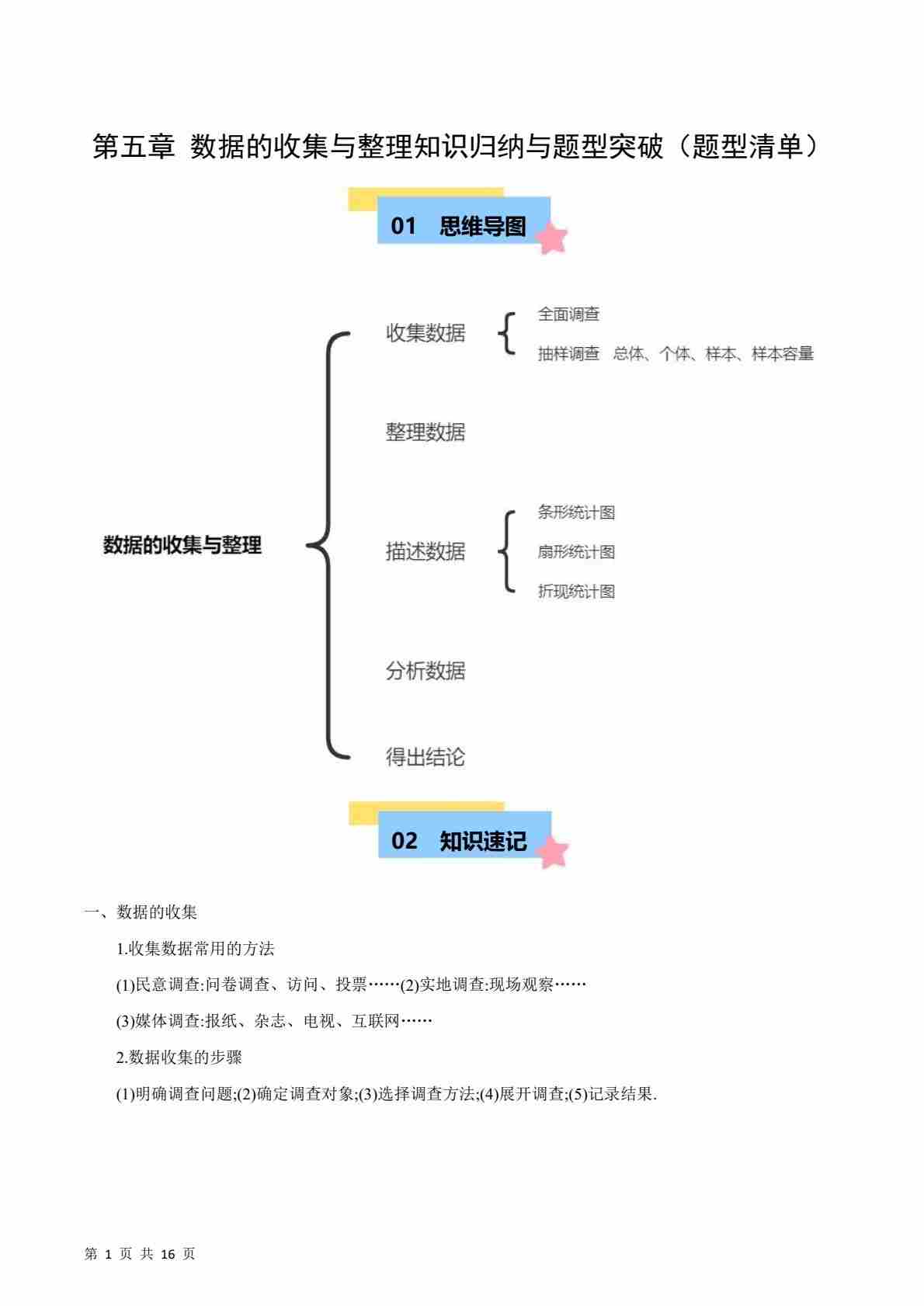第5章 数据的收集与整理知识归纳与题型突破(5类题型清单)(原卷版)