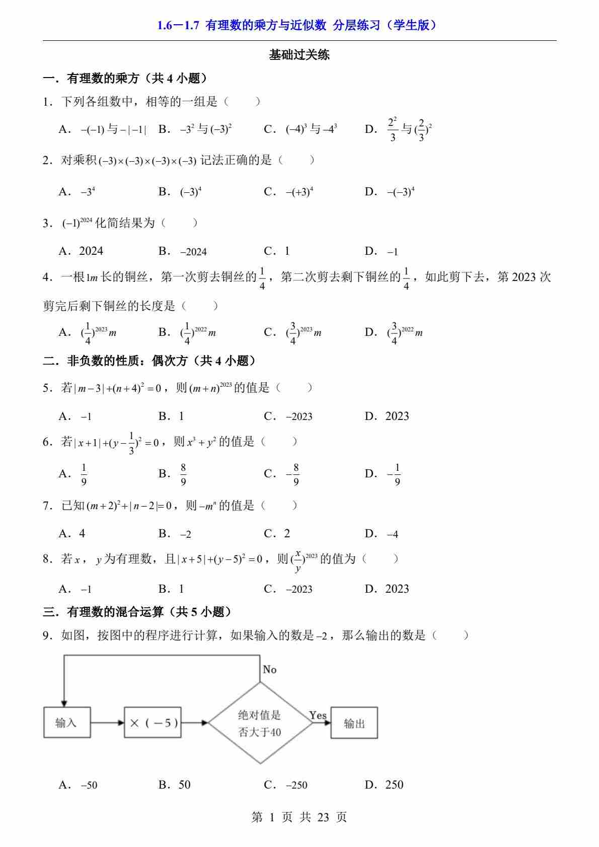 1.6~1.7 有理数的乘方与近似数(分层练习)
