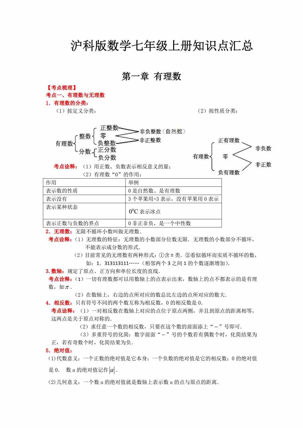 沪科版数学七年级上册知识点汇总.