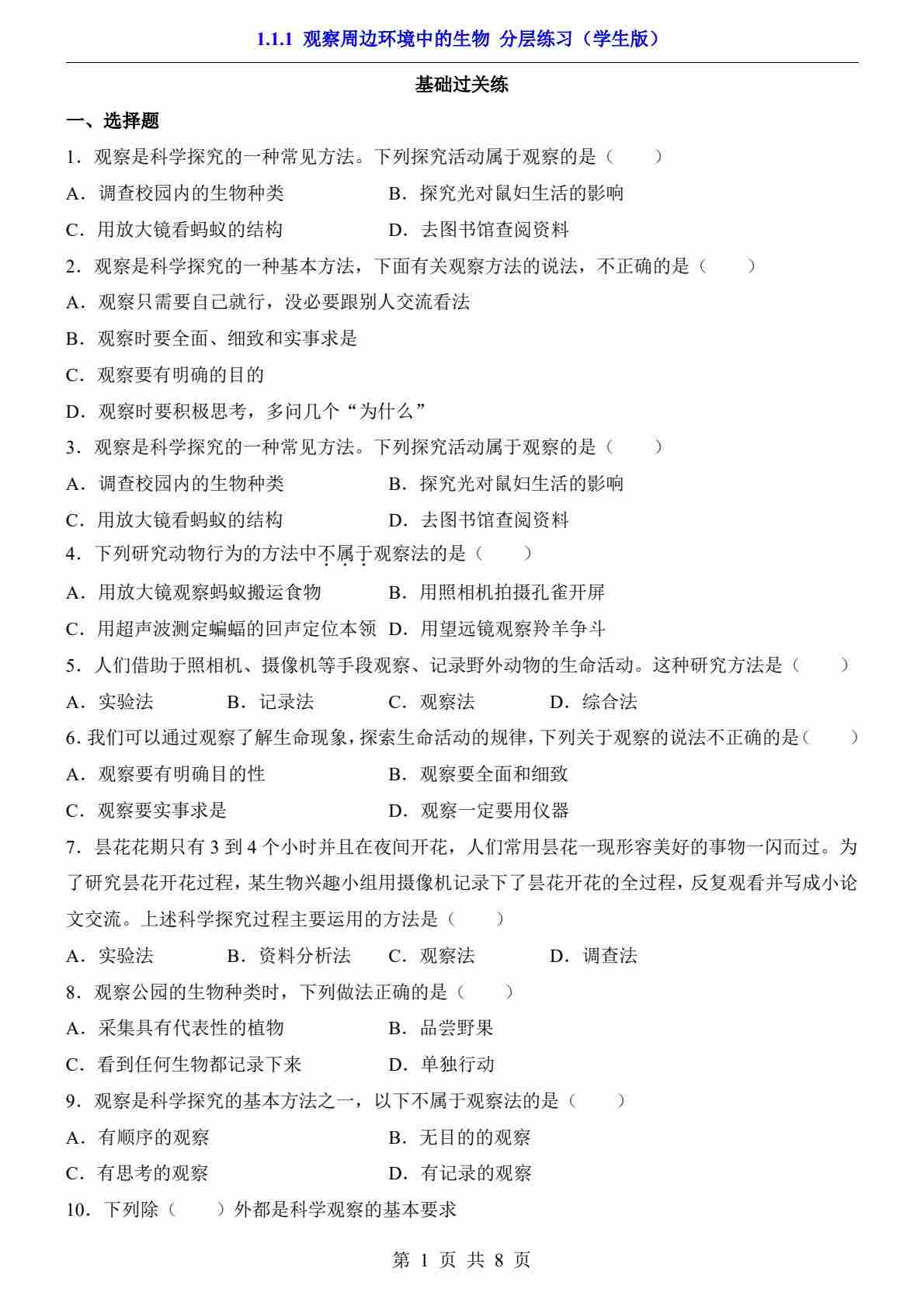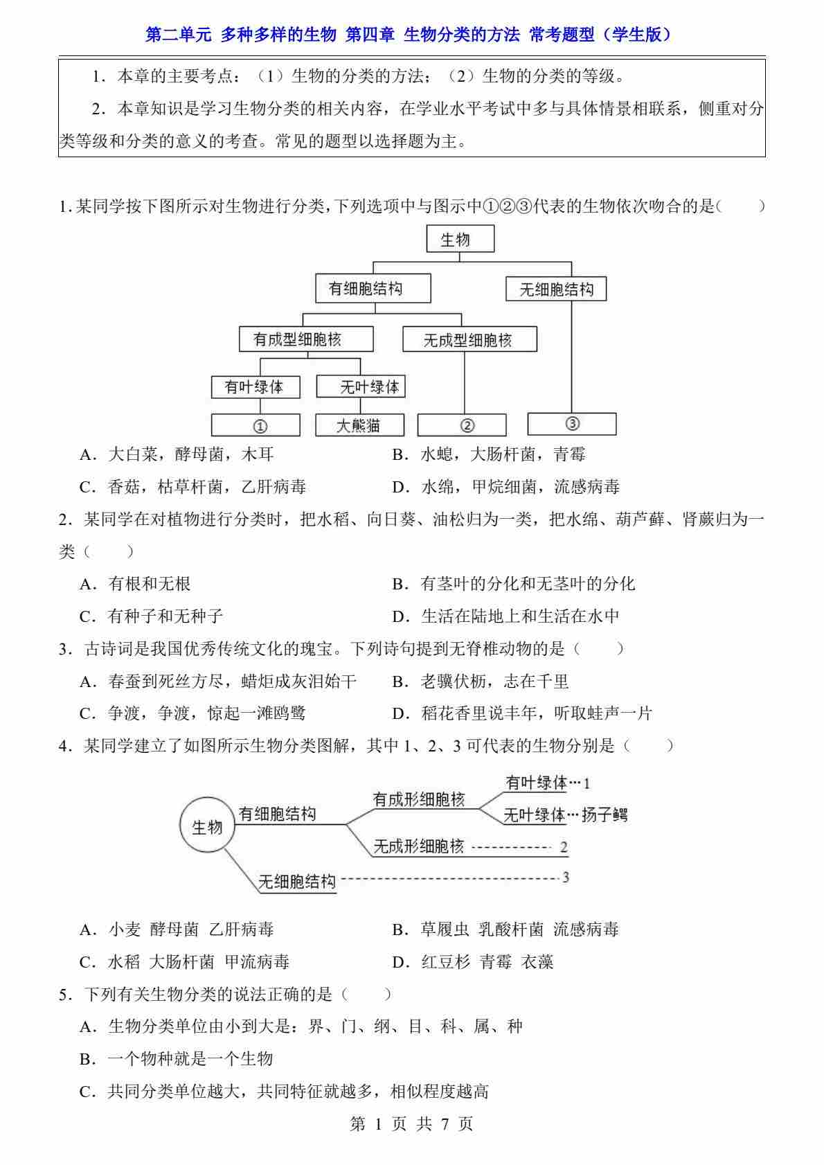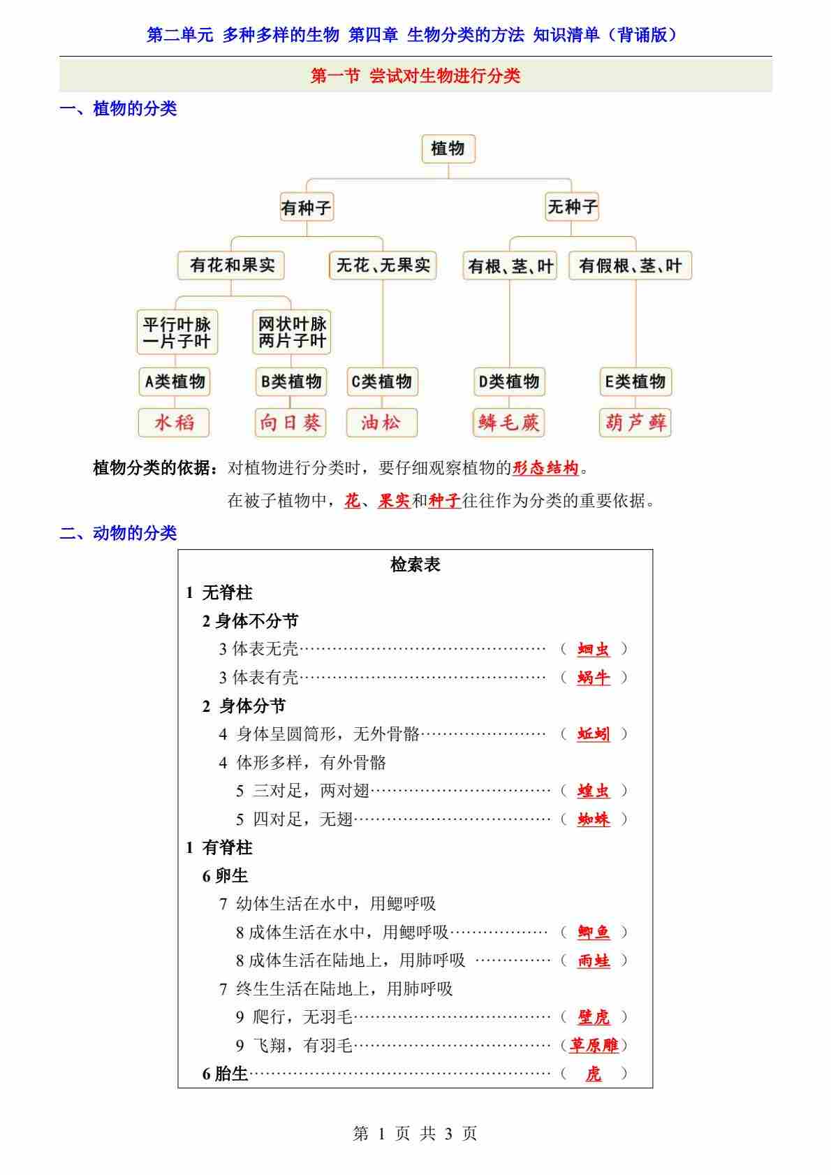 第2单元 第4章 生物分类的方法(知识清单-背诵版)