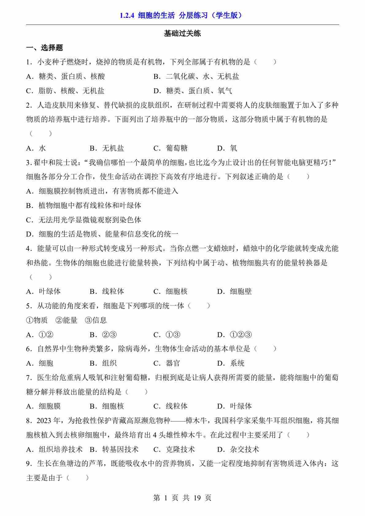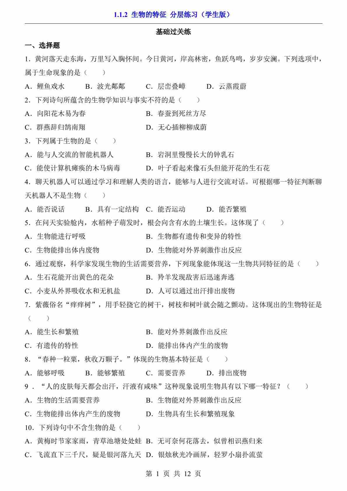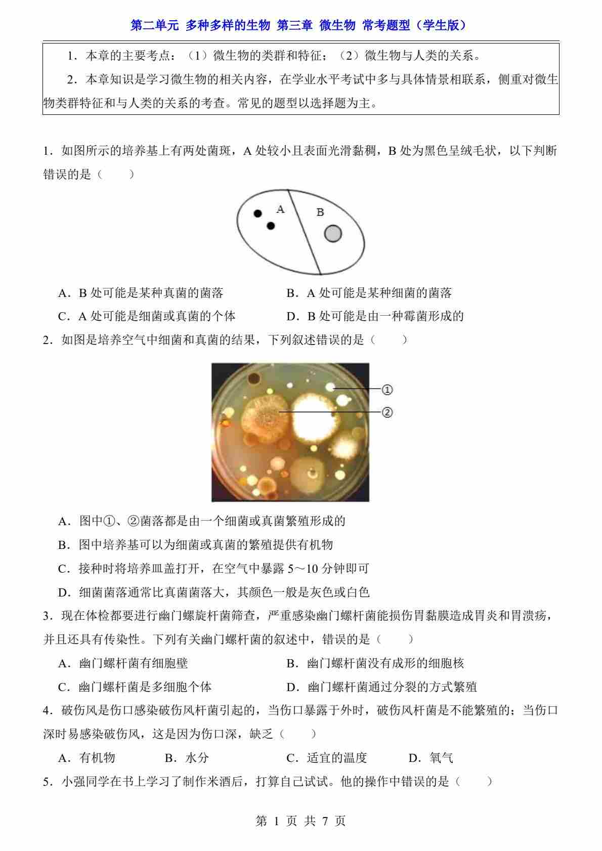 第2单元 第1章 藻类与植物的类群(知识清单-背诵版)