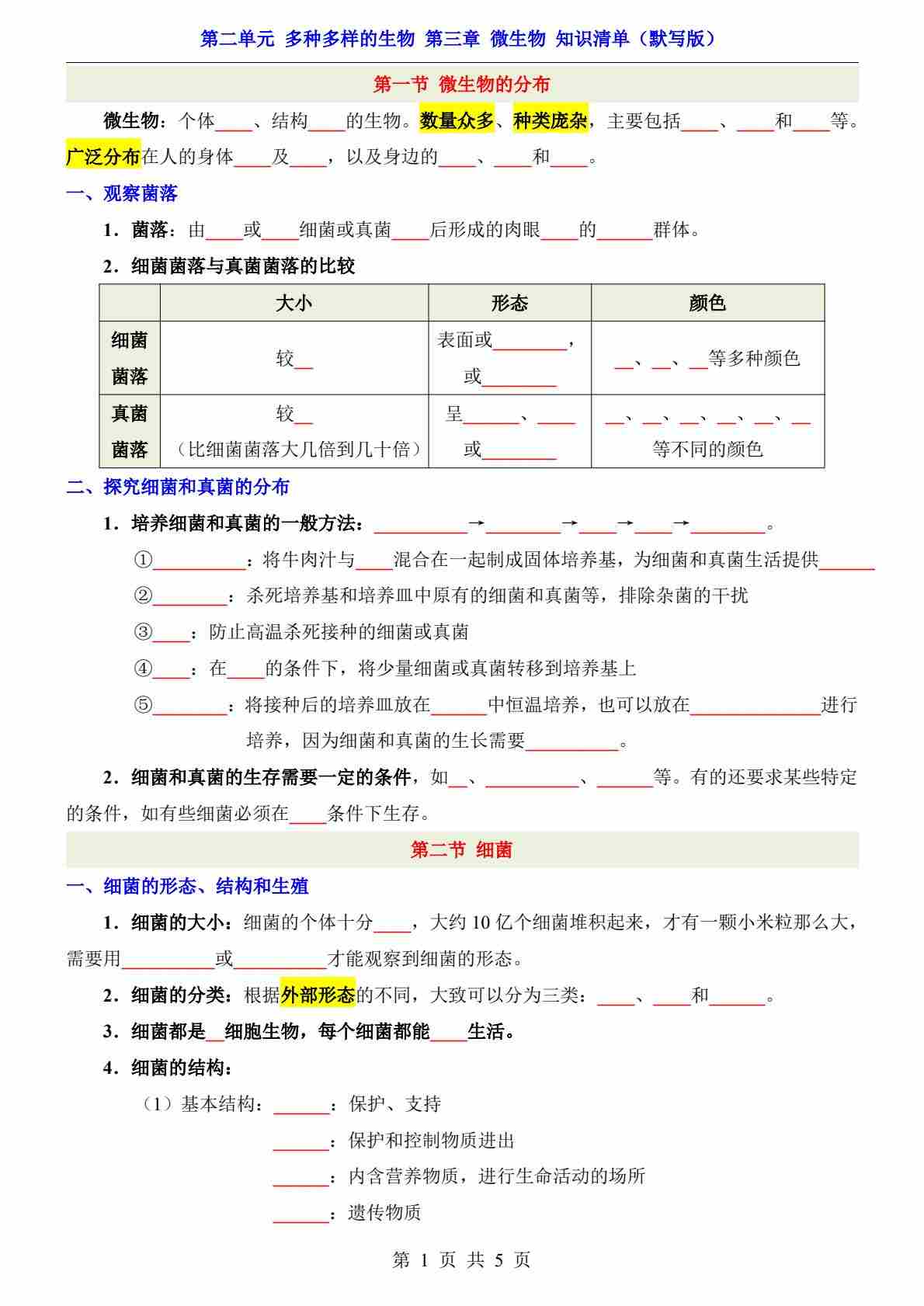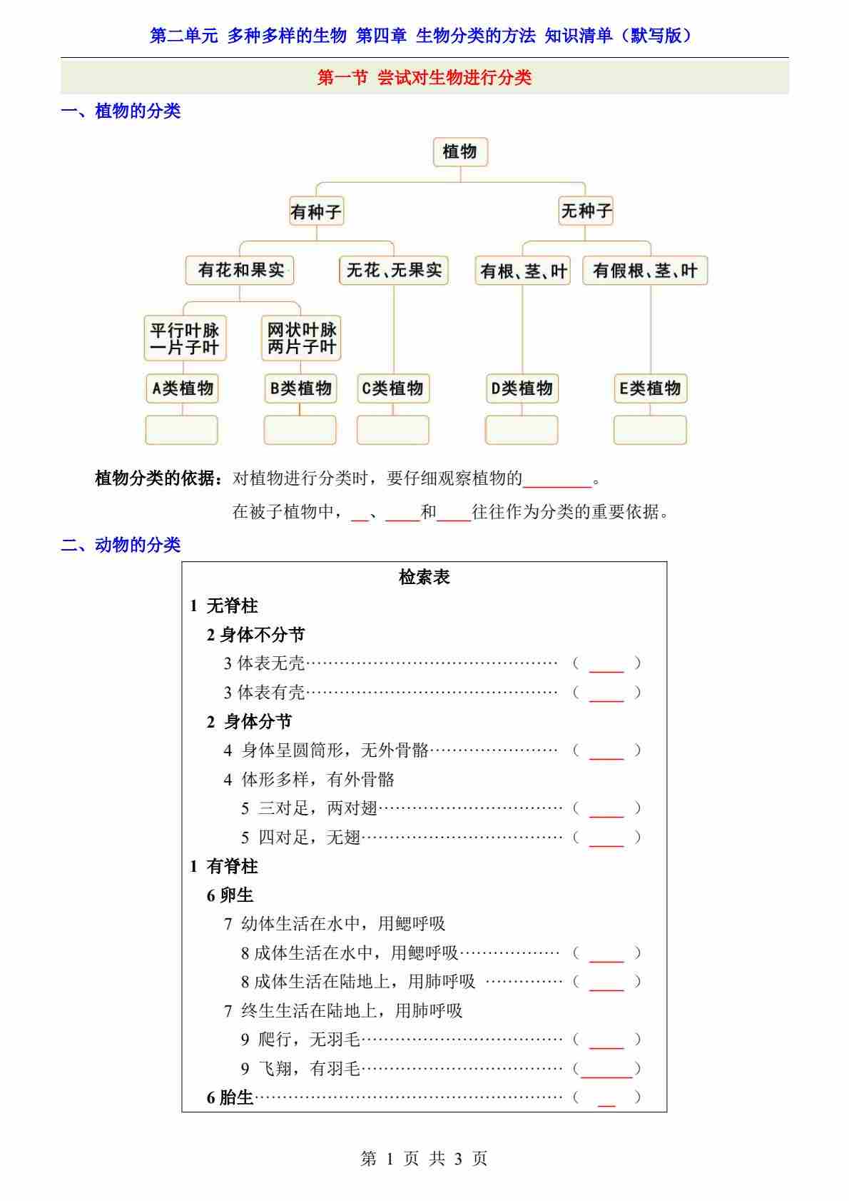 第2单元 第4章 生物分类的方法(知识清单-默写版)