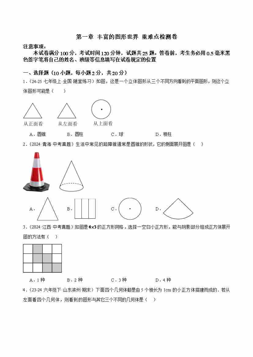 第一章 丰富的图形世界 重难点检测卷(原卷版)