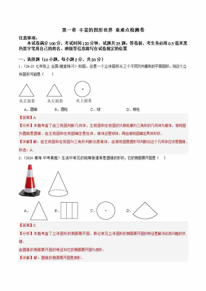 第一章 丰富的图形世界 重难点检测卷(解析版)