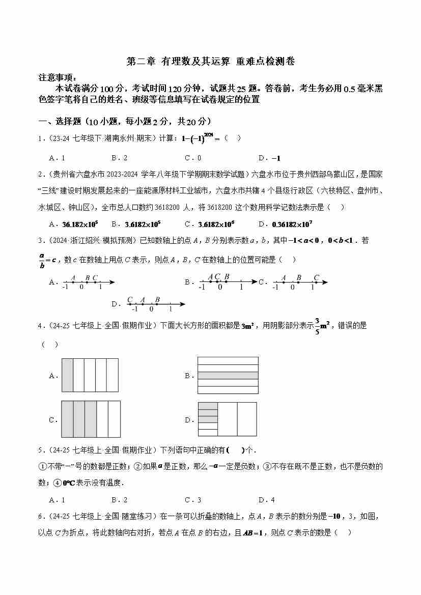 第二章 有理数及其运算 重难点检测卷(原卷版)