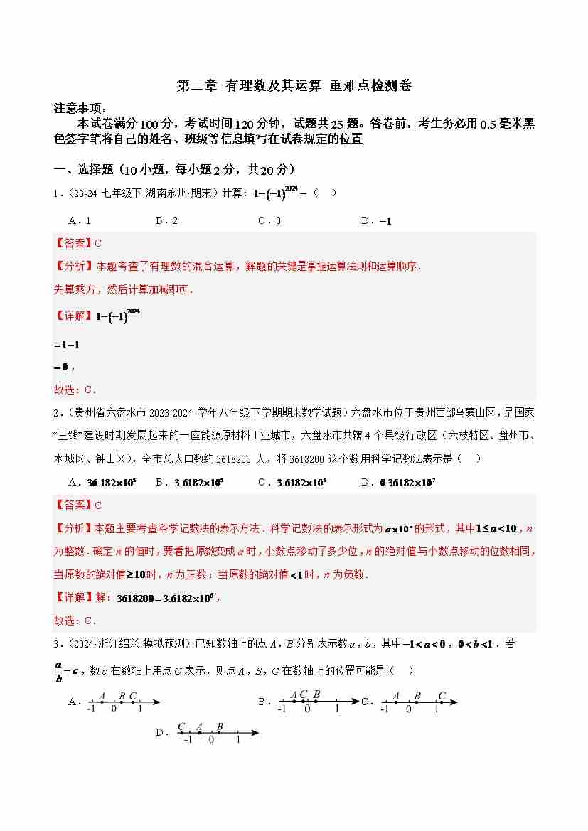 第二章 有理数及其运算 重难点检测卷(解析版)