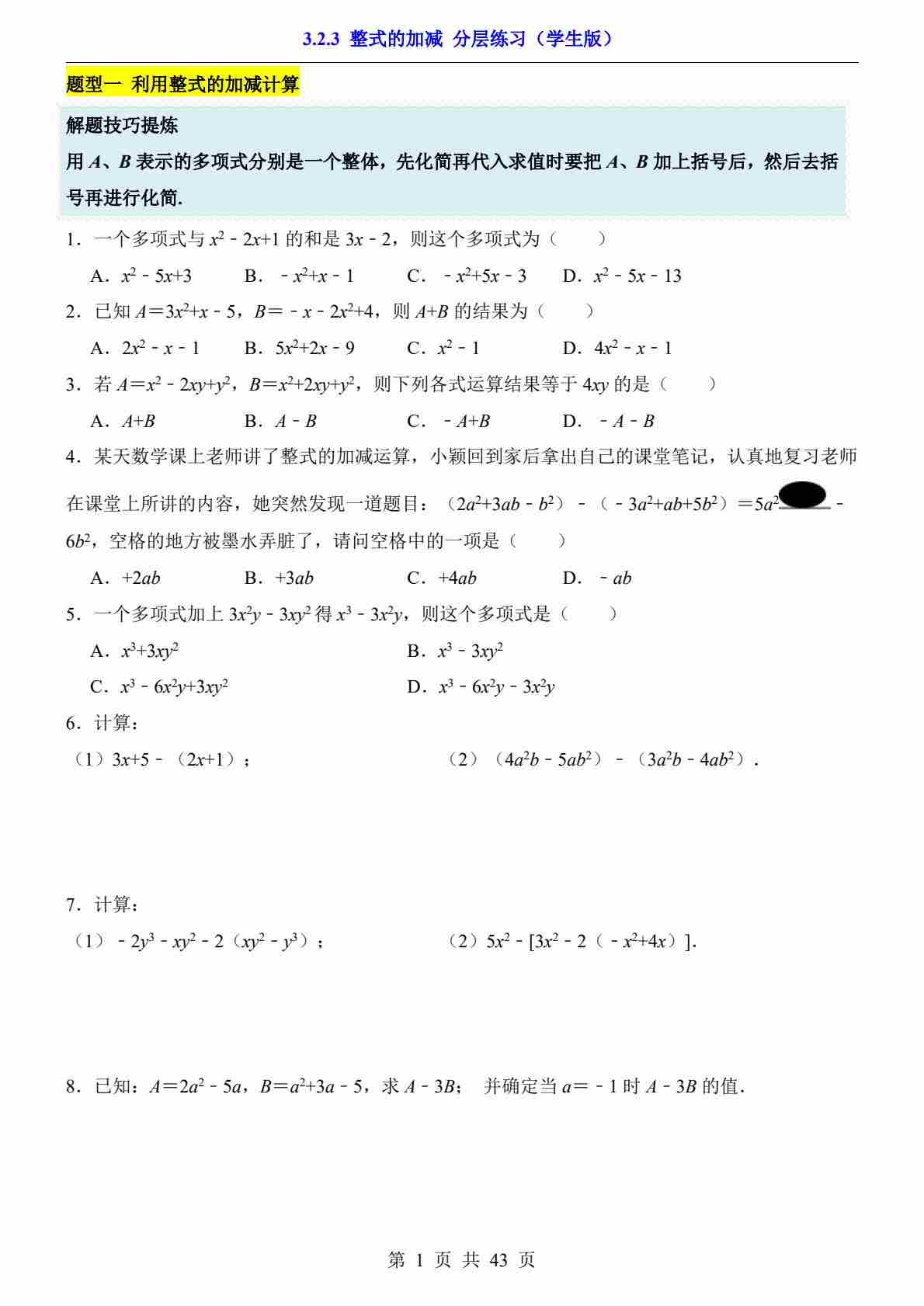 3.2.3 整式的加减(分层练习)