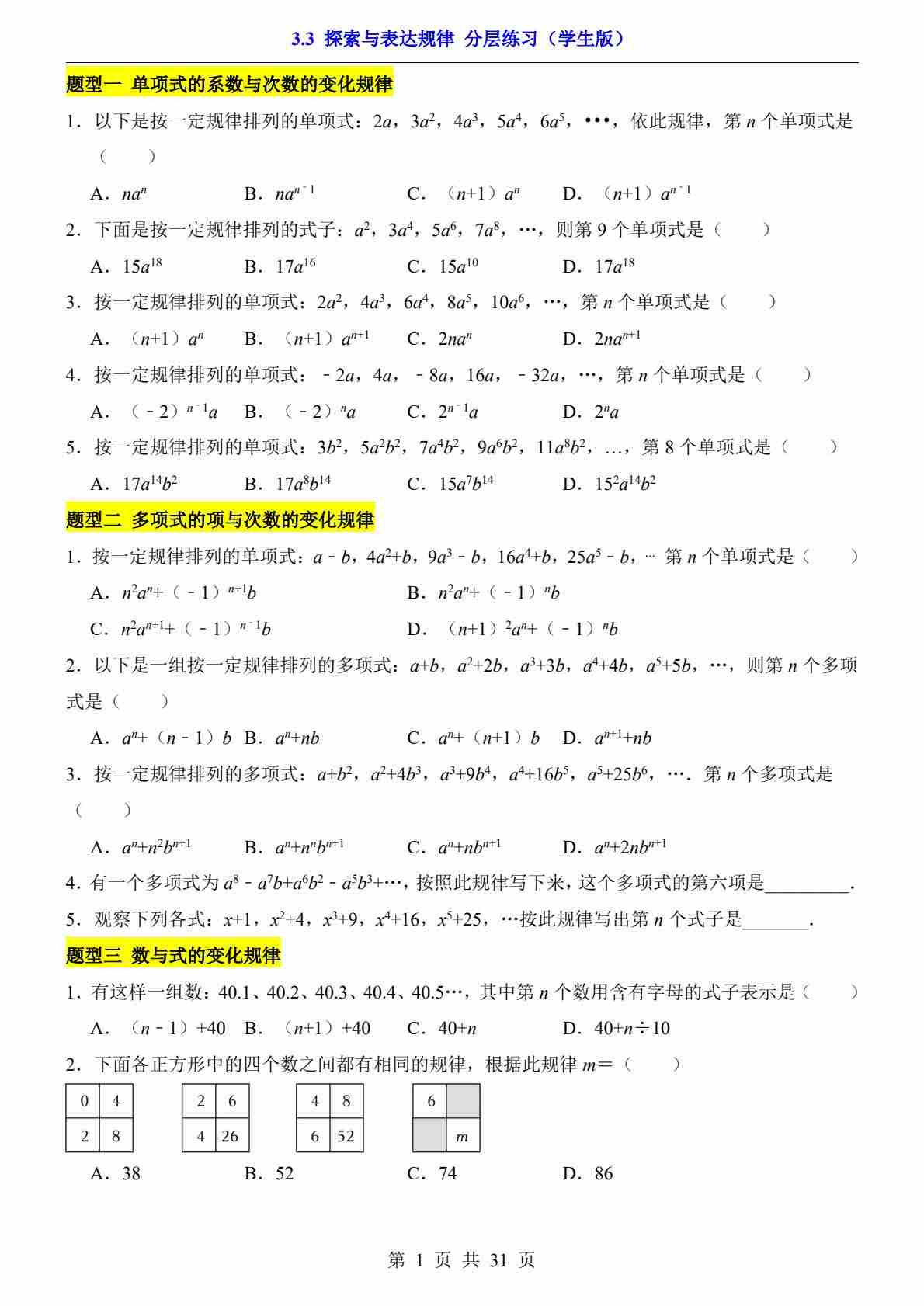 3.3 探索与表达规律(分层练习)