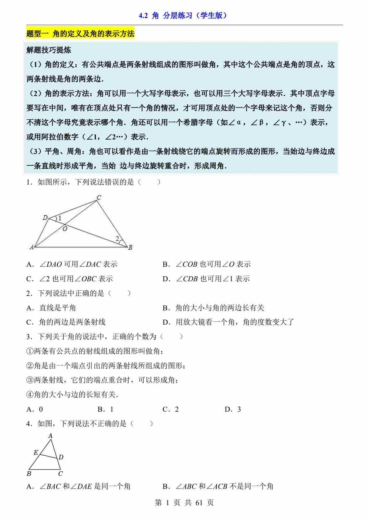 4.2 角(分层练习)