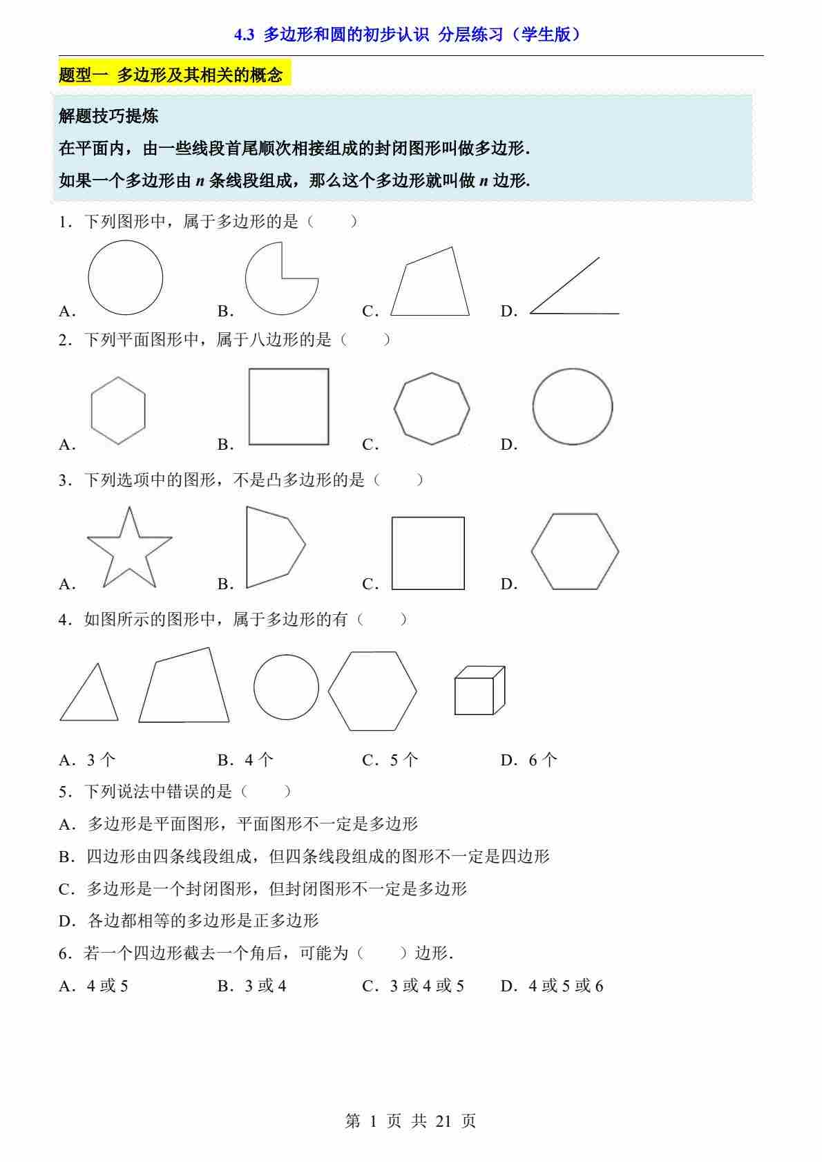 4.3 多边形和圆的初步认识(分层练习)