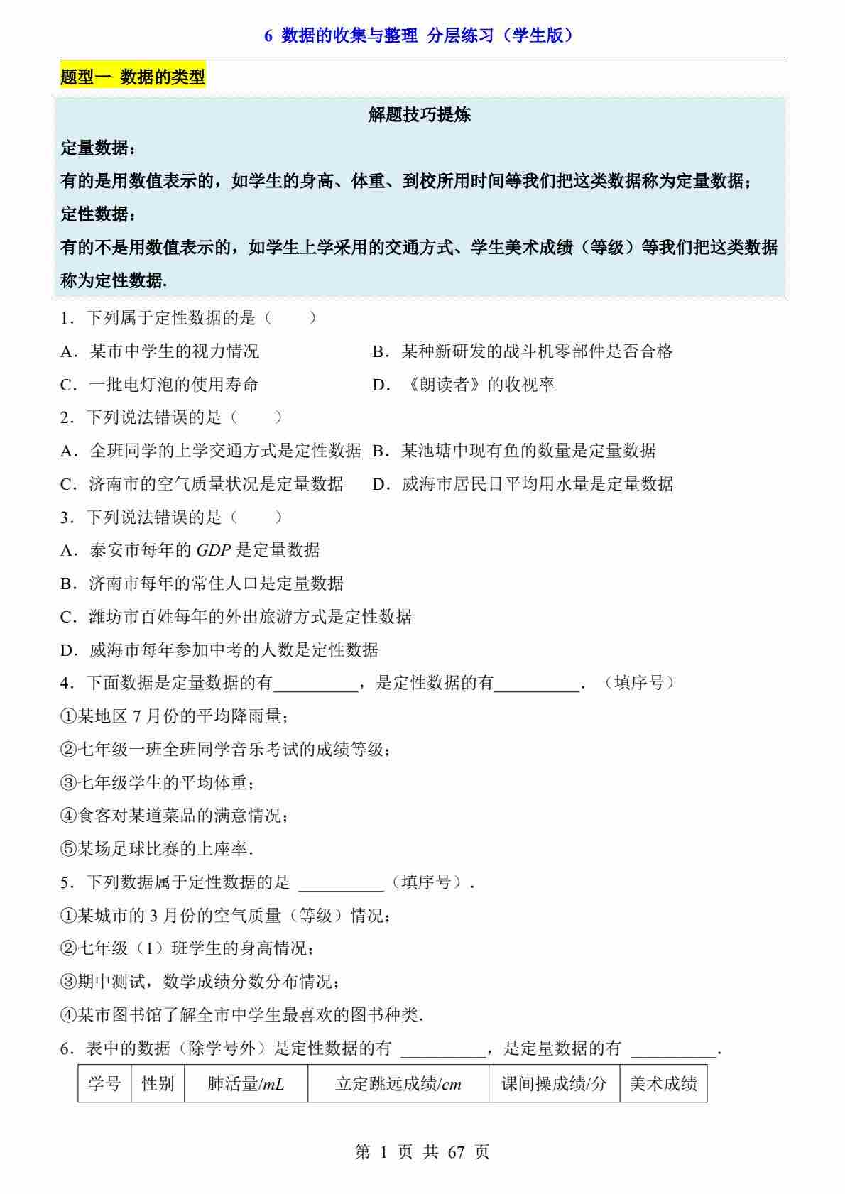 第六章 数据的收集与整理(分层练习) (2)