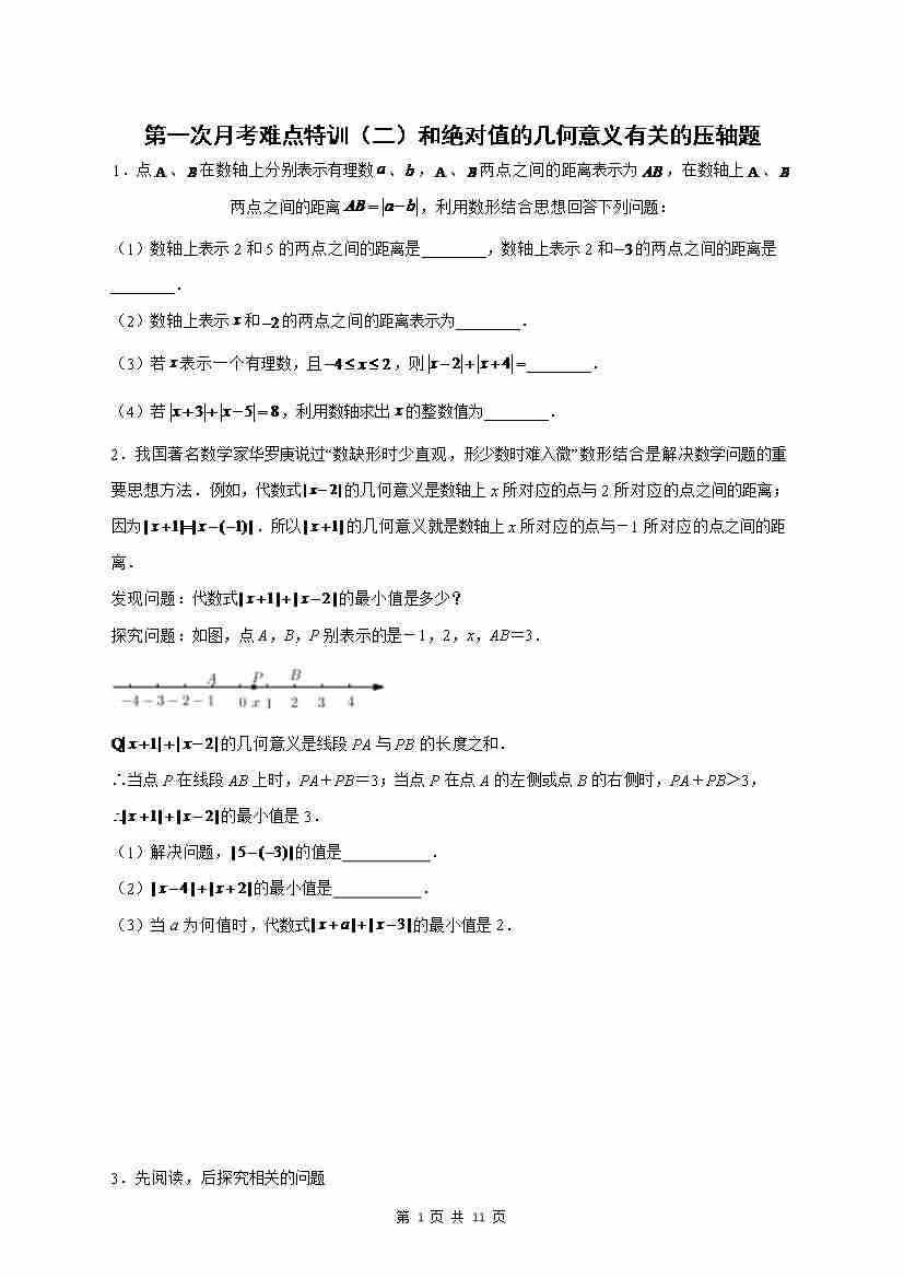 第一次月考难点特训(2)和绝对值的几何意义有关的压轴题(原卷版)