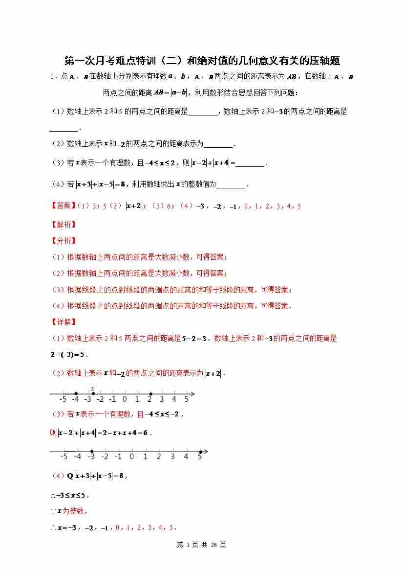 第一次月考难点特训(2)和绝对值的几何意义有关的压轴题(解析版)