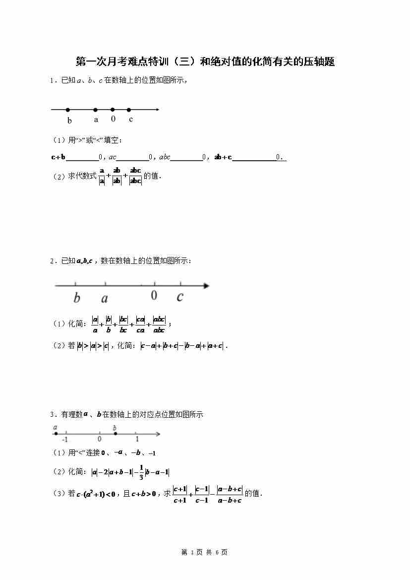 第一次月考难点特训(3)和绝对值的化简有关的压轴题(原卷版)