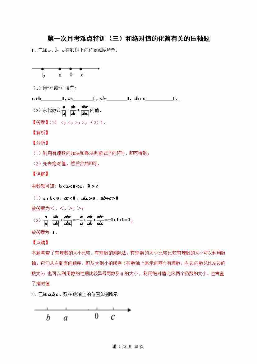 第一次月考难点特训(3)和绝对值的化简有关的压轴题(解析版)