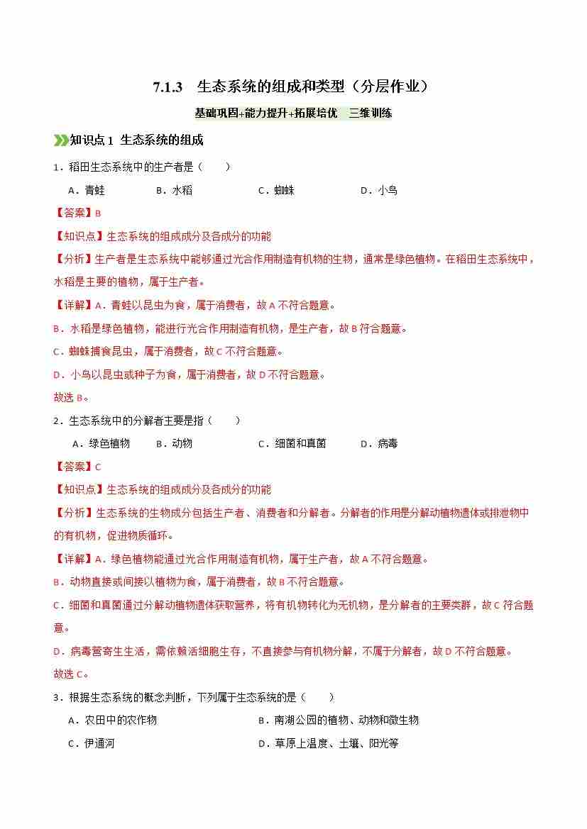 7.1.3 生态系统的组成和类型(分层作业)(解析版)